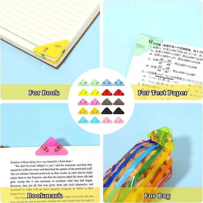 HC Paper Clip Segitiga Warna-Warni Klip Sudut Penjepit Buku Akrilik Penjepit Kertas Binder Plastik Clips Book & Paper Corner Perlengkapan Kantor Sekolah t