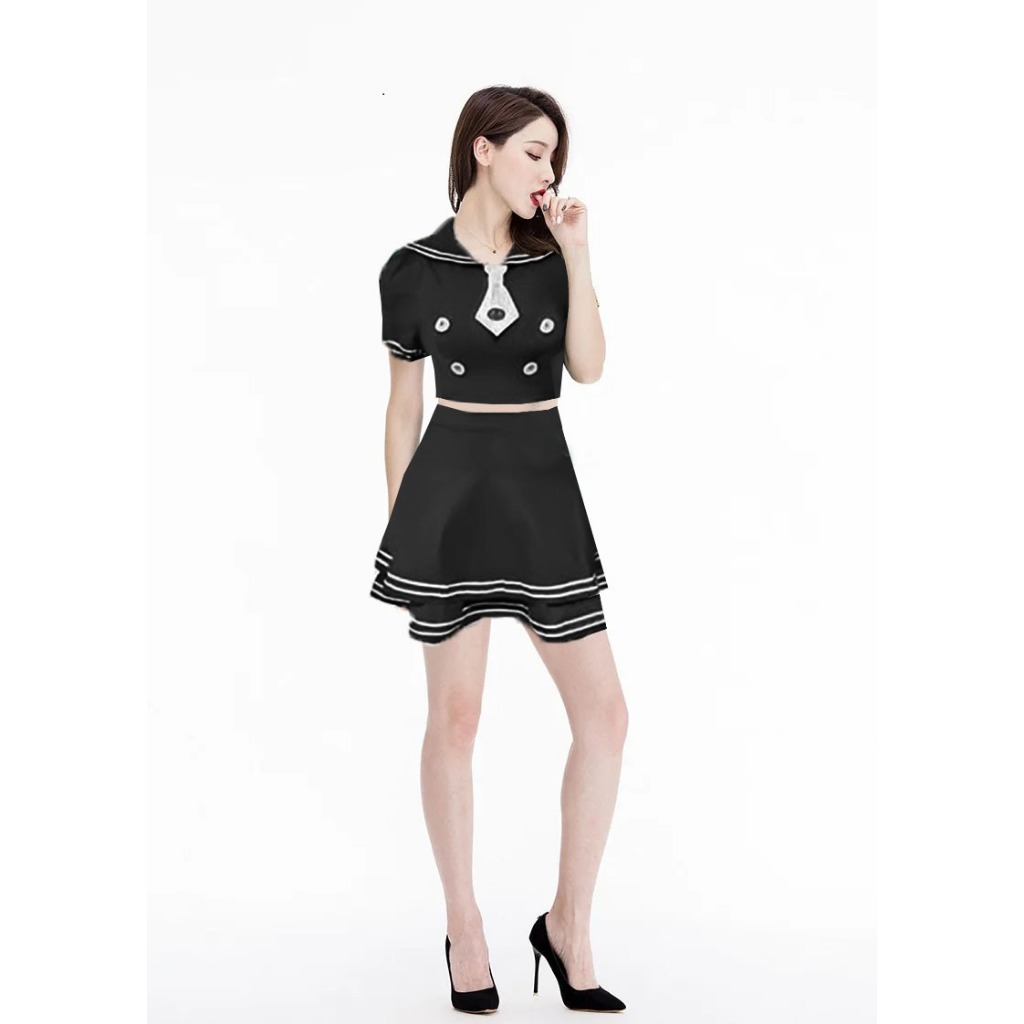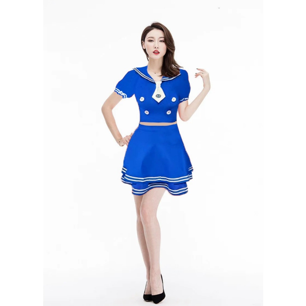 Happycorn HC2186 Setelan Mini Pramugari Dasi No Cup Bra Cotton Stretch / Setelan Kostum Mini Katun / Baju Costum Pramugari Seksi / Dress Kostum