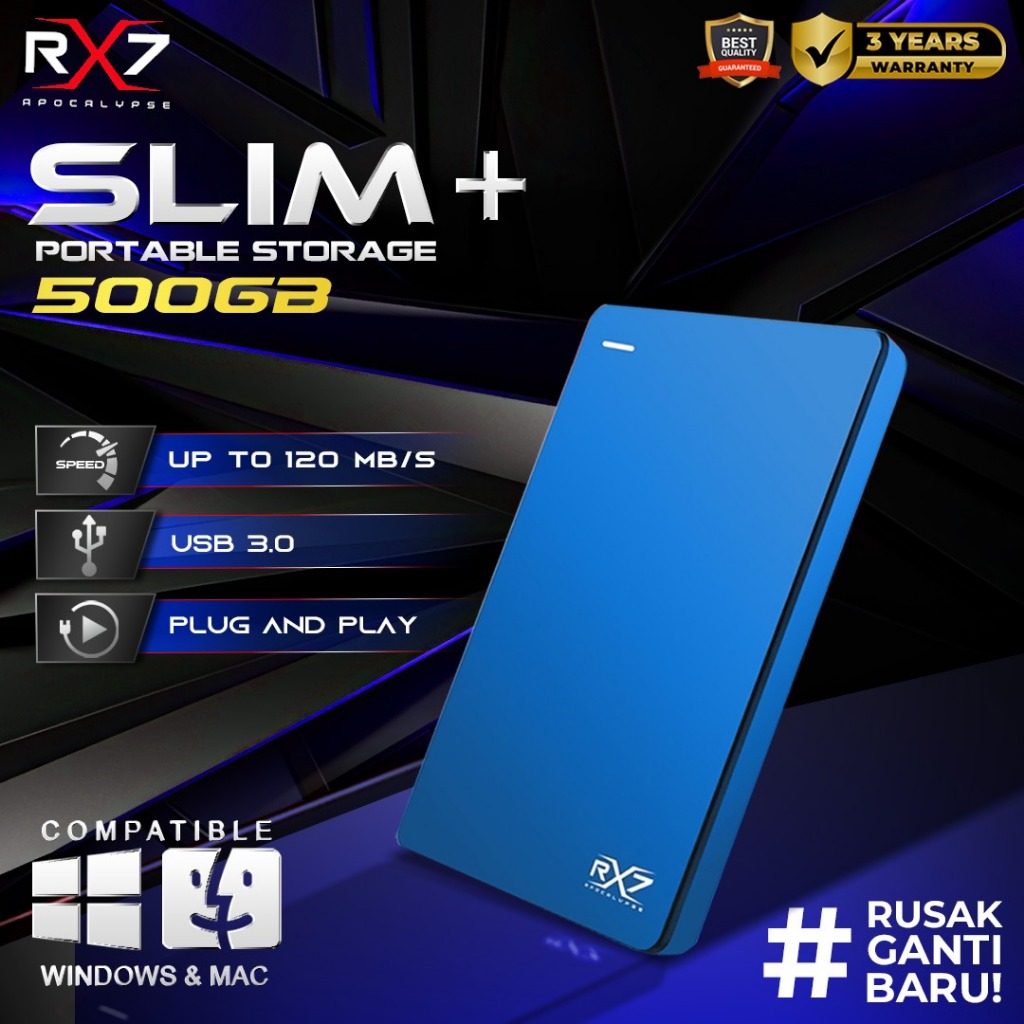 HDD EXTERNAL BACKUP SLIM+ RX7 500GB BLUE / BIRU GARANSI