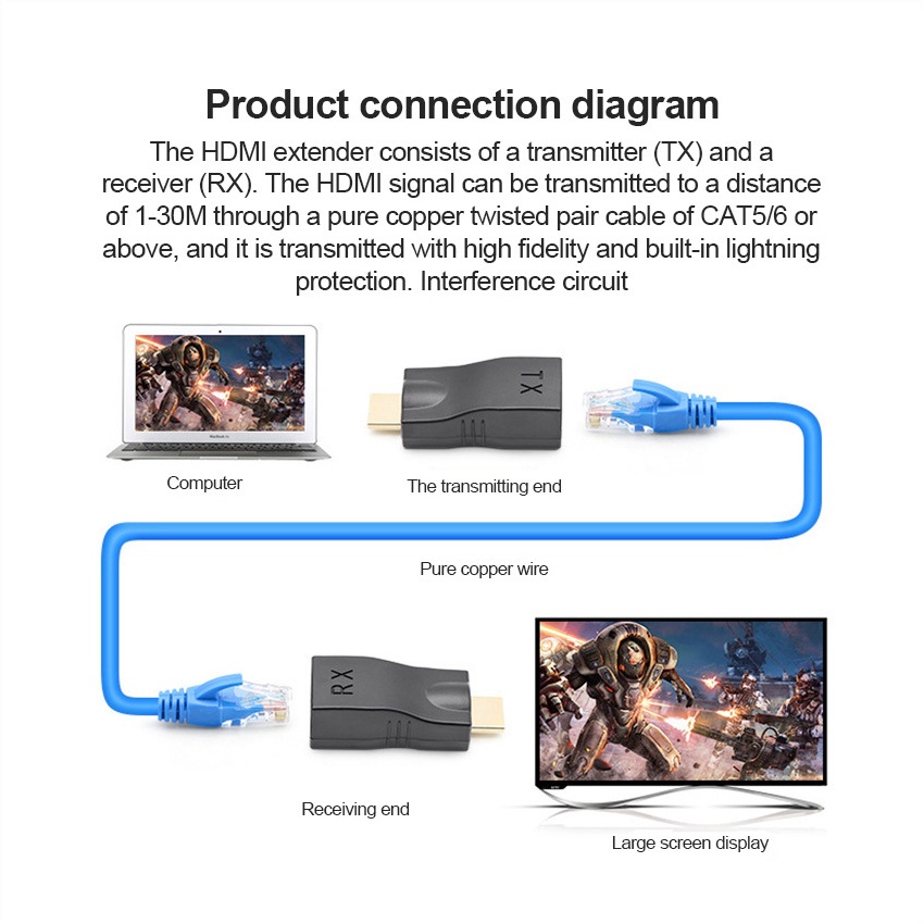 HDMI Extender 30 Meter Cat5e Cat6 Rj45 HDMI Extension Kabel LAN Ethernet