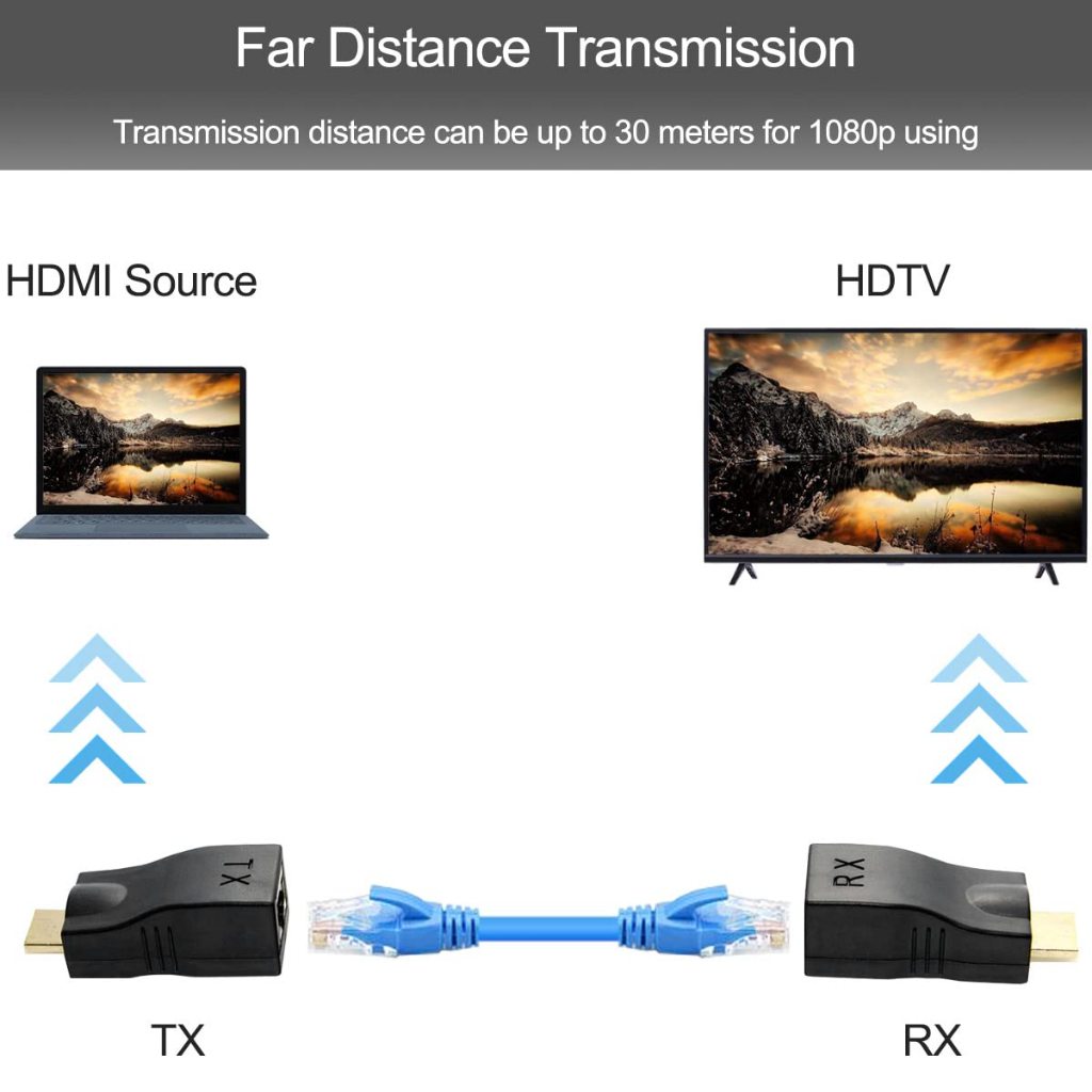 HDMI Extender 30 meter HDMI Extension RJ45 Lan /HDMI Lan Adapter - HDMI Extender By Cat 5e - CAT 6 Cable/Adapter RJ45 Female to
