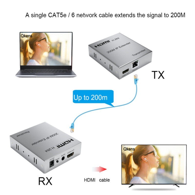 HDMI Extender 4K 200M RJ45 Lan Cat 5E/ Cat 6 HDMI Extension Rj45 LAN /Hdmi extender over cat 6 6e 5e 200m 1080p adapter - hdtv to lan rj45