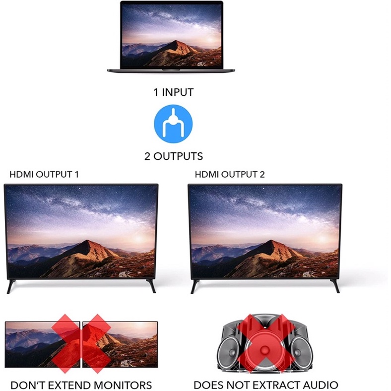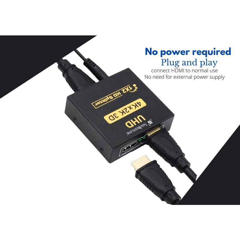 HDMI Splitter 2 Port Hub Full Video 1X2 HD Spliter Split 1 In 2 Out