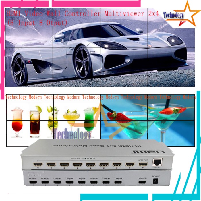 HDMI Video Wall Controller 2x4 4x2 Multiviewer (8 Input 8 Output) FHD