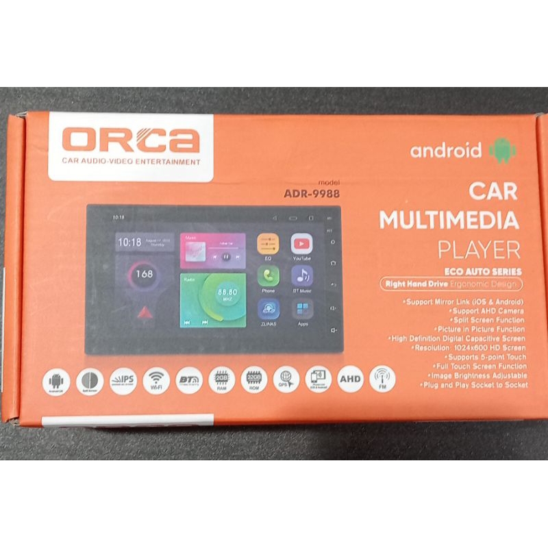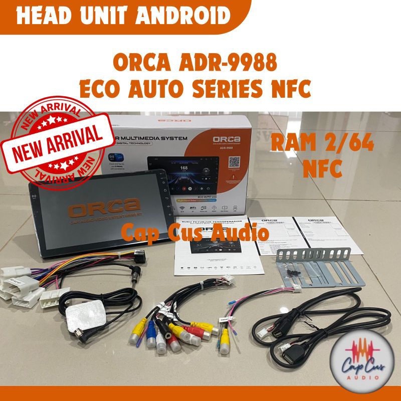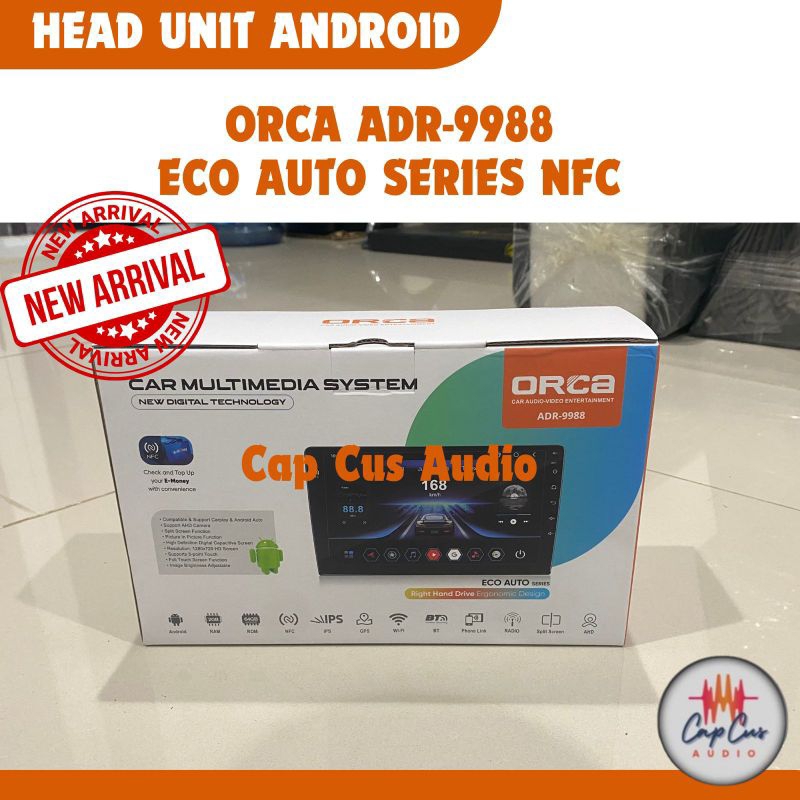 HEAD UNIT ANDROID MOBIL ORCA ECO AUTO SERIES ADR-9988 / HEAD UNIT MOBIL ORCA APPLE CARPLAY & ANDROID AUTO / HEAD UNIT ORCA NFC