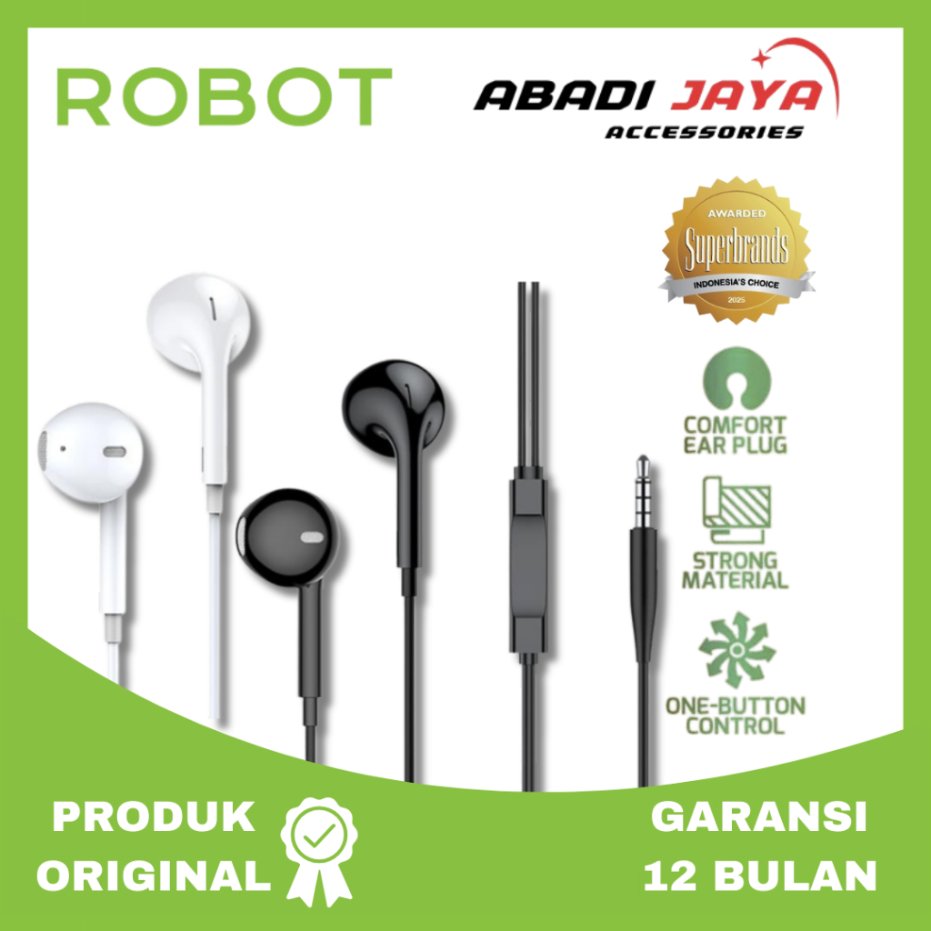HEADSET ROBOT RE10 Semi In-Ear Clear and Comfortable Wired Headset
