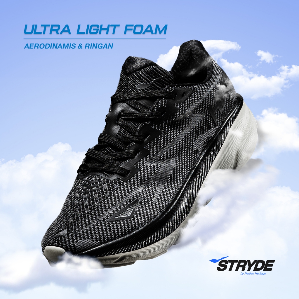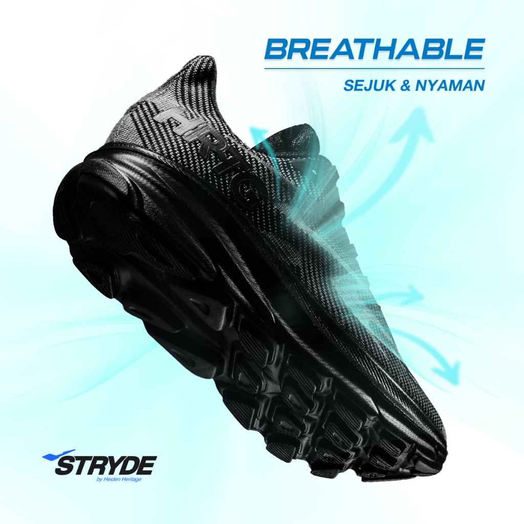 HEIDEN HERITAGE [HRTG] - STRYDE 1 - FULL BLACK Sepatu Sport Running Sekolah Casual Style Lari Pria Dewasa - STRYDE