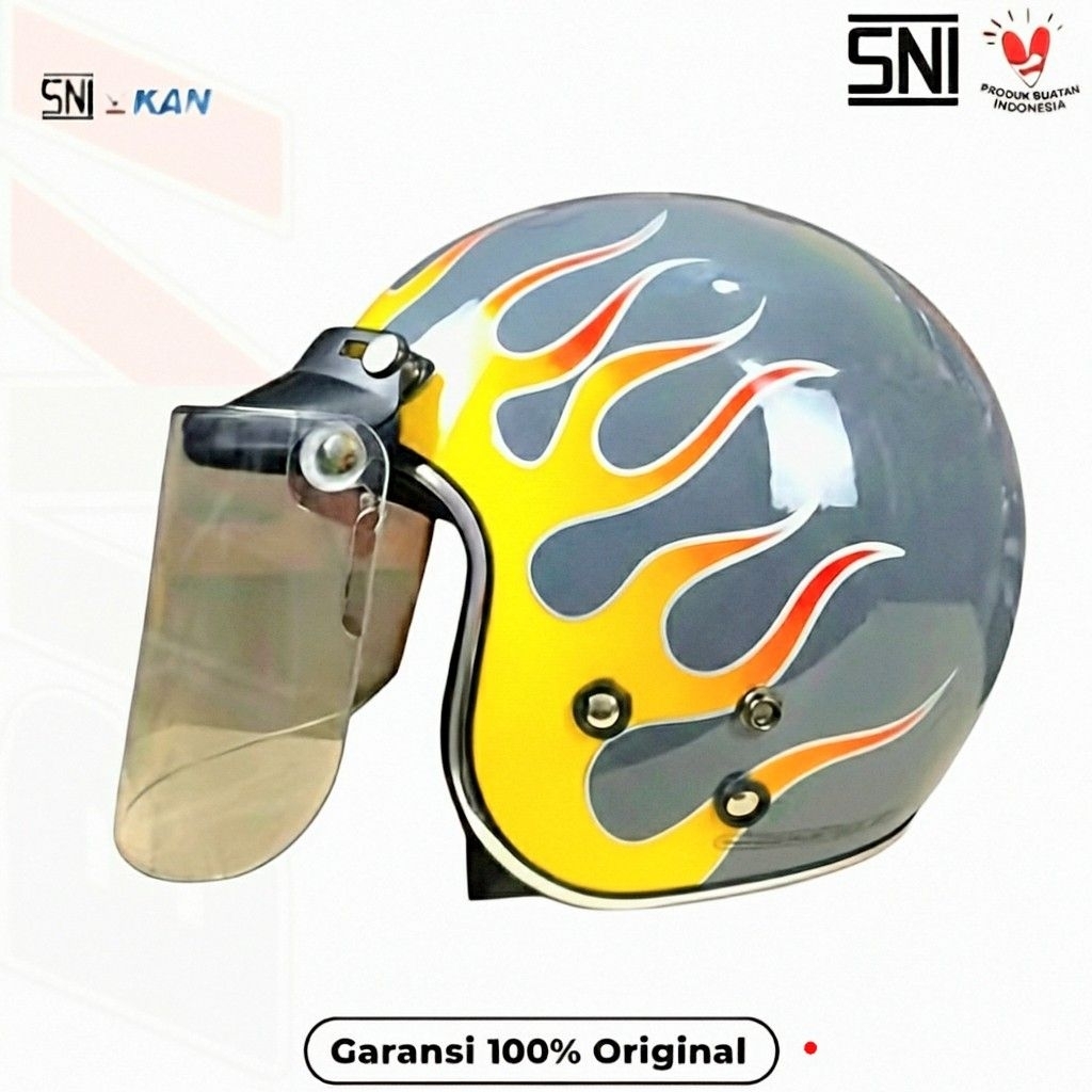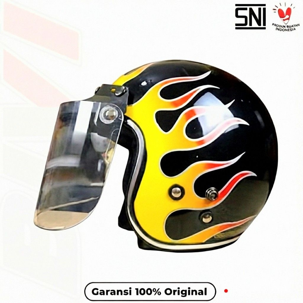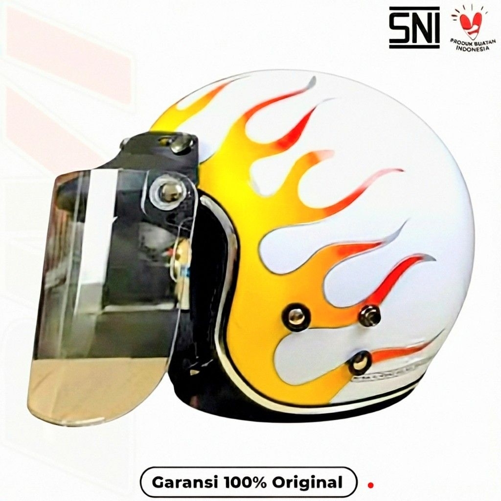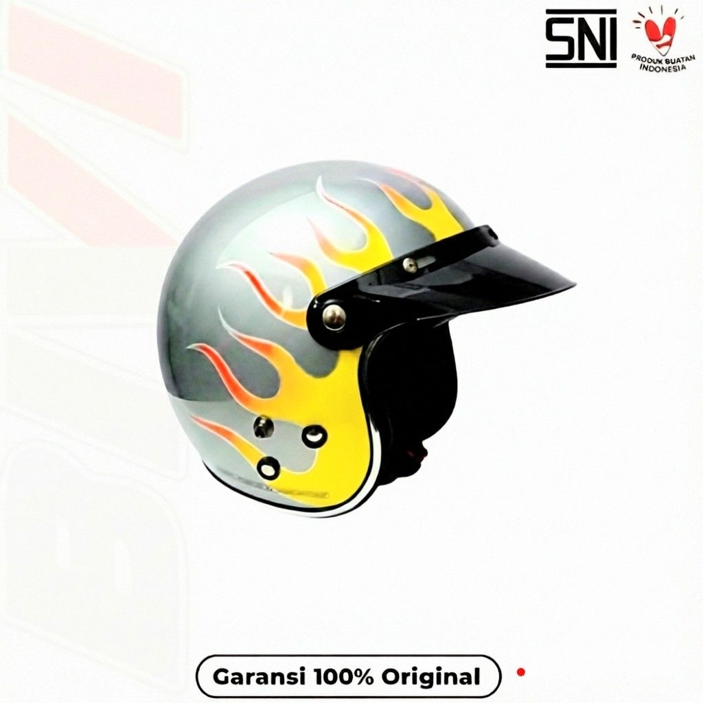 HELM MOTIF API - CG List Chrome ORI SNI Retro Half Face Dewasa Pria Wanita