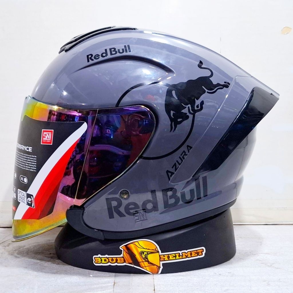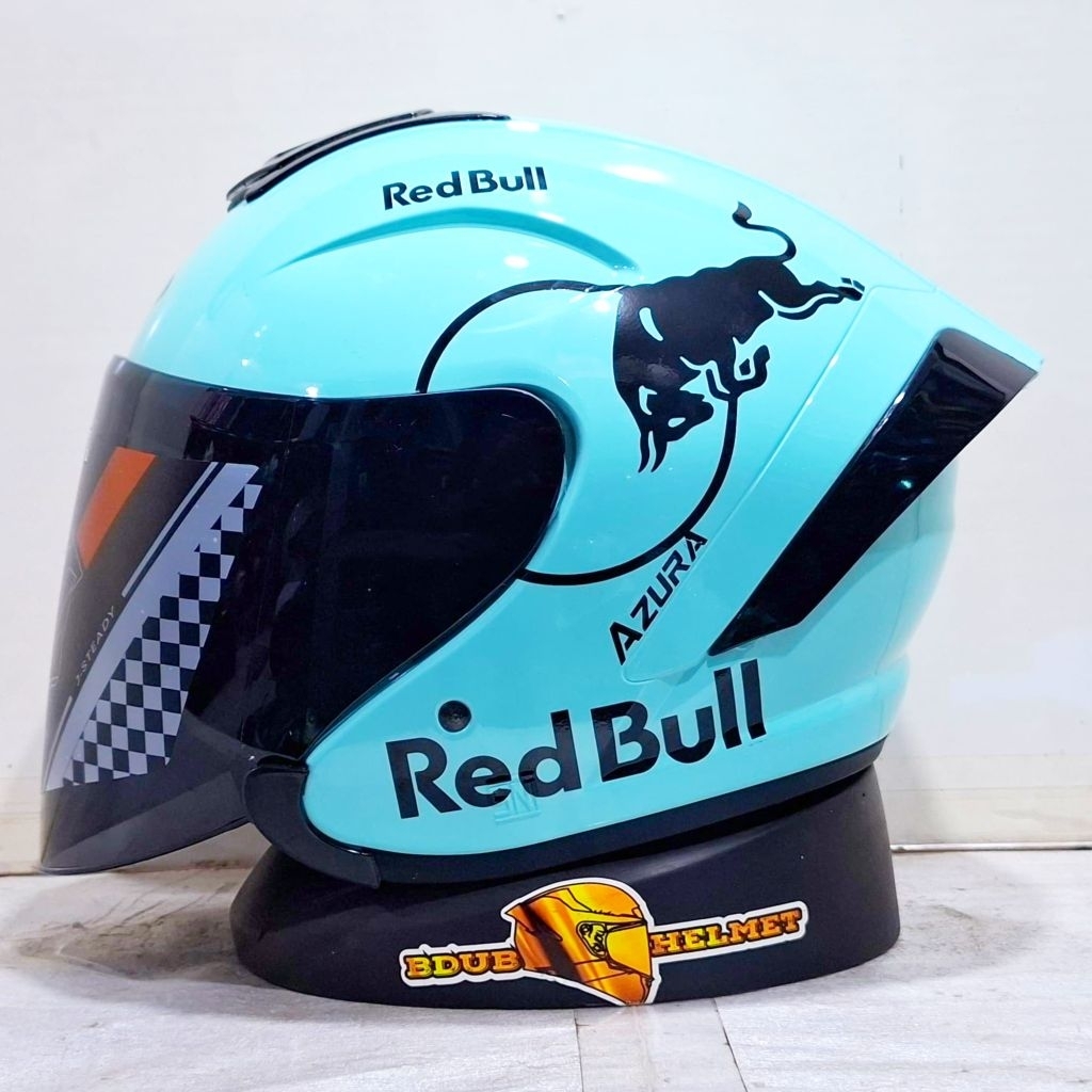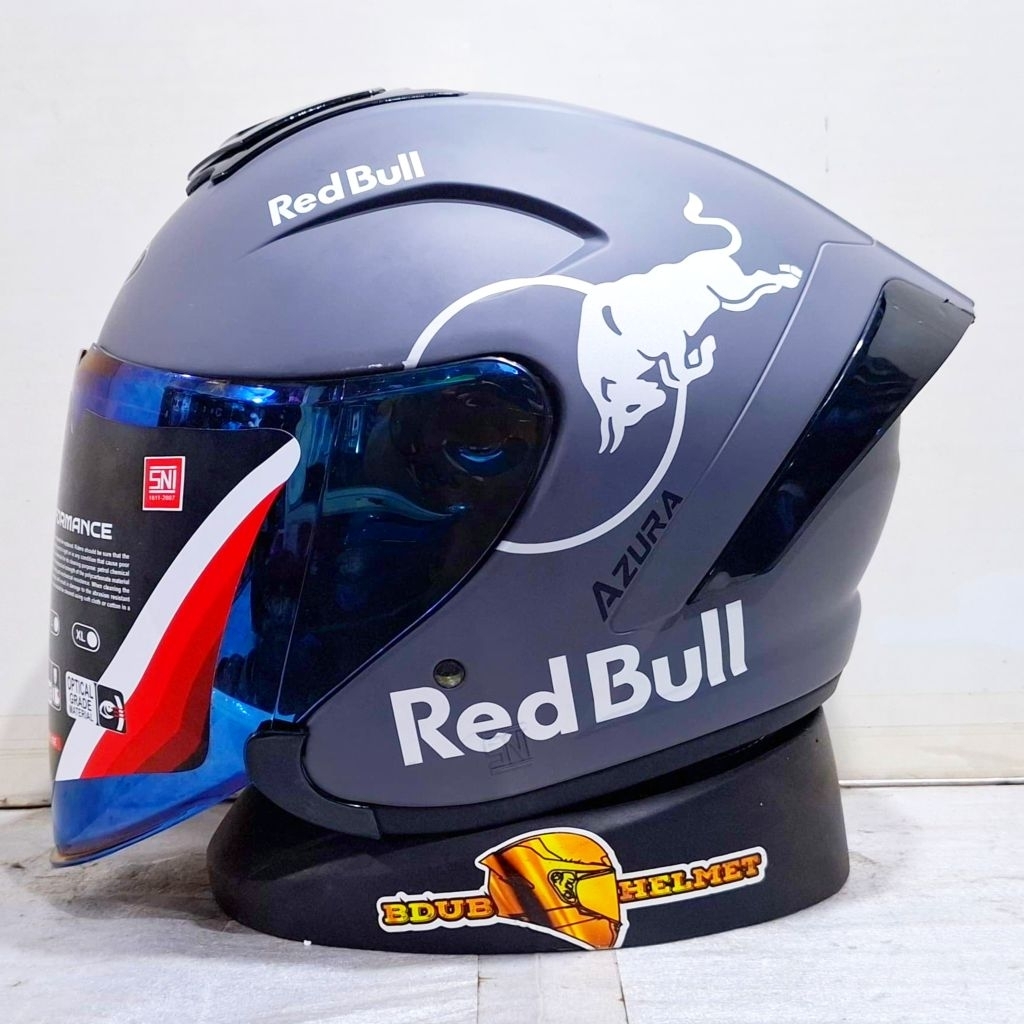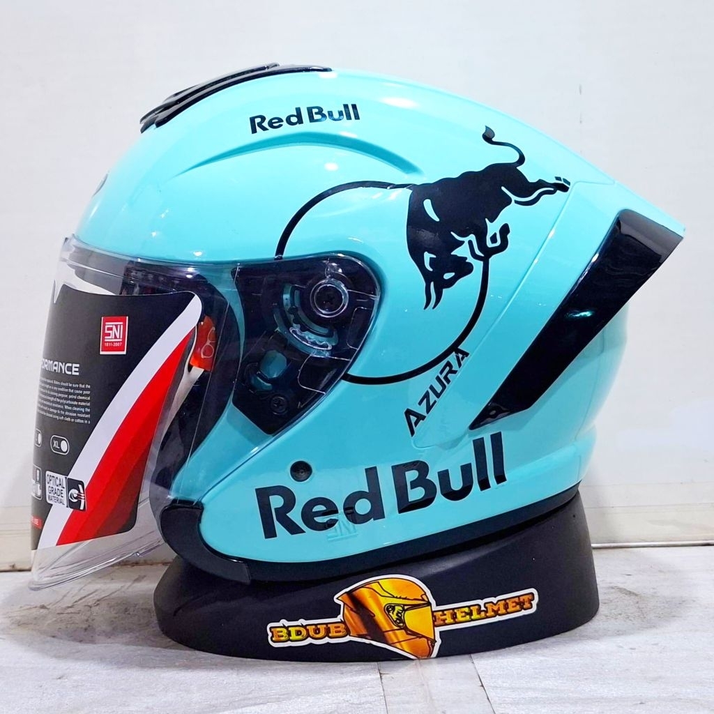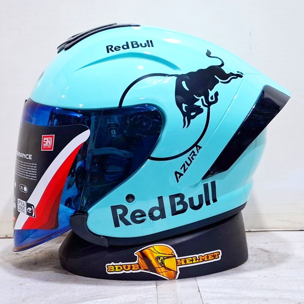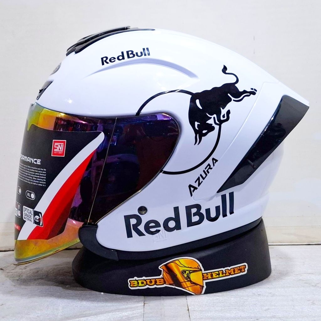 Helm NIELS azura White Redbull paket ganteng spoiler 3D