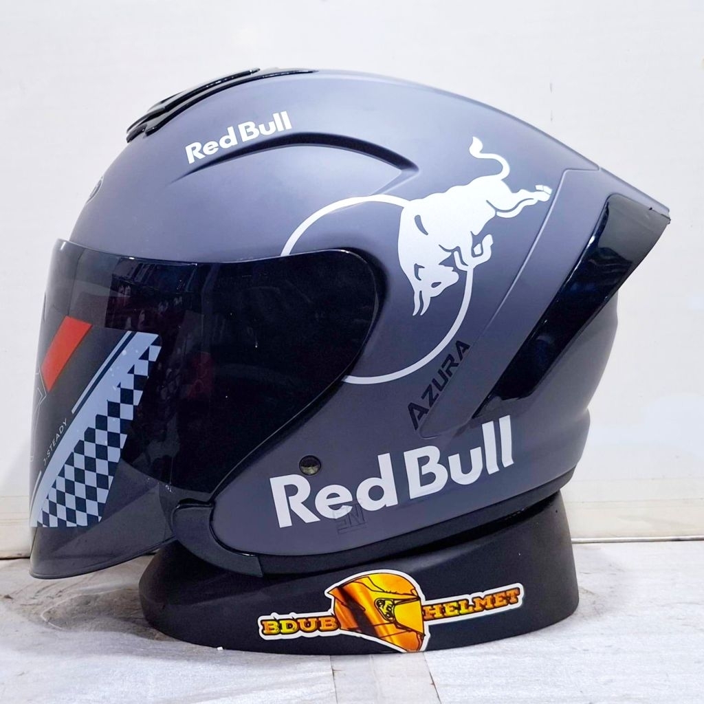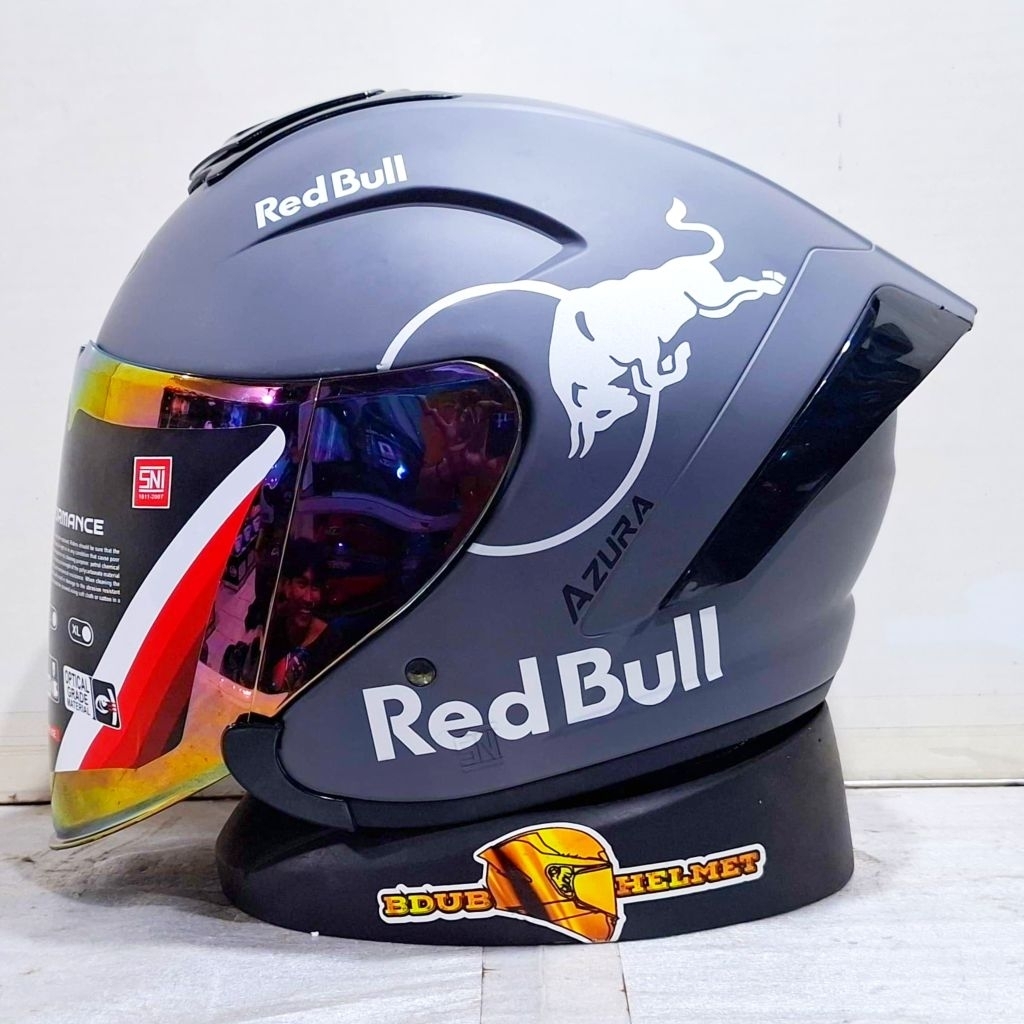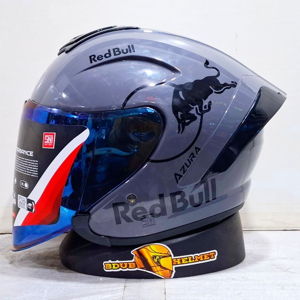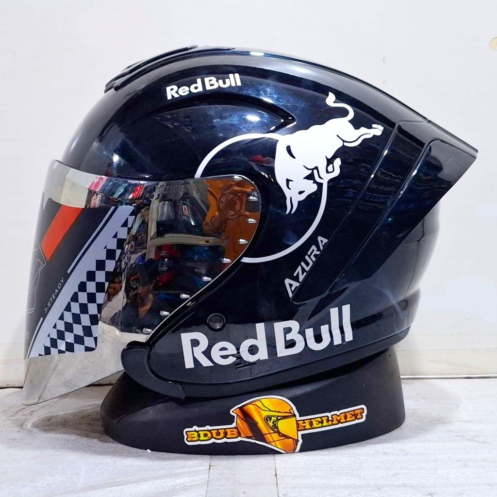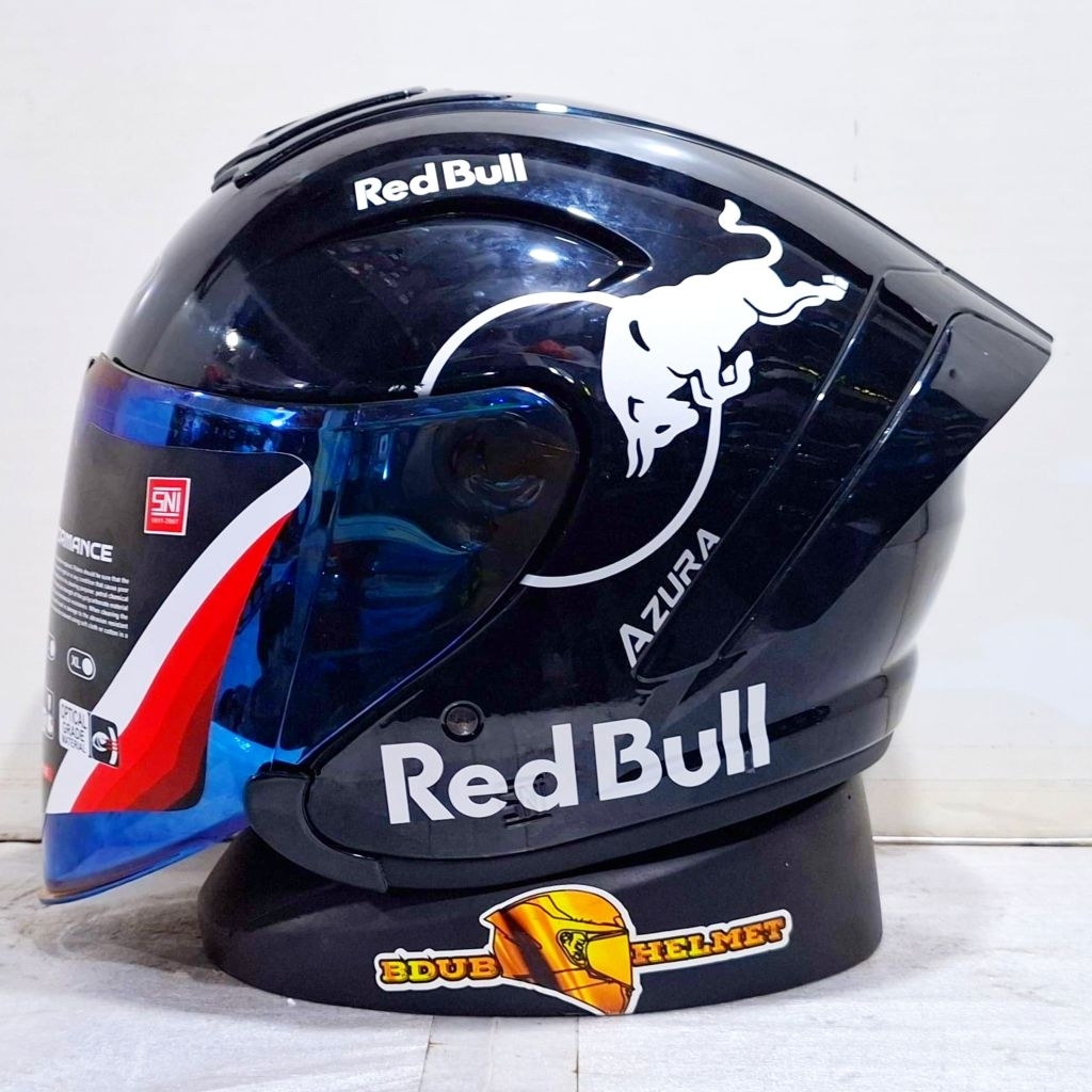 Helm NIELS azura White Redbull paket ganteng spoiler 3D
