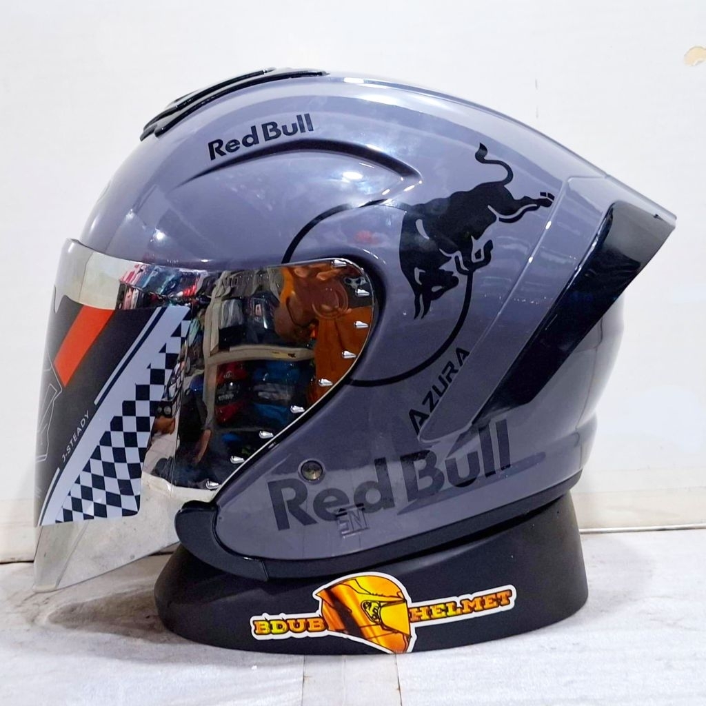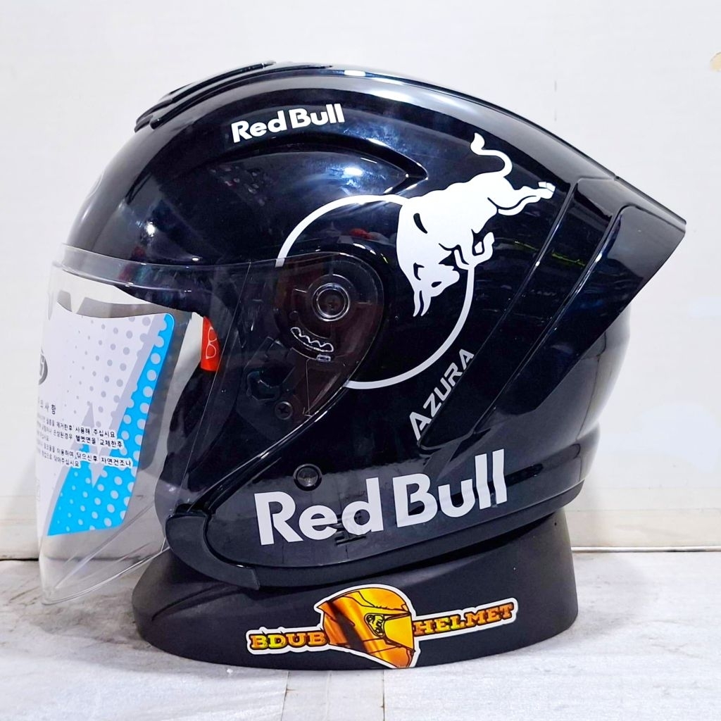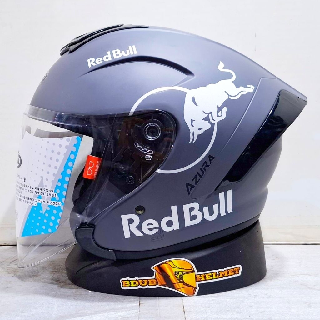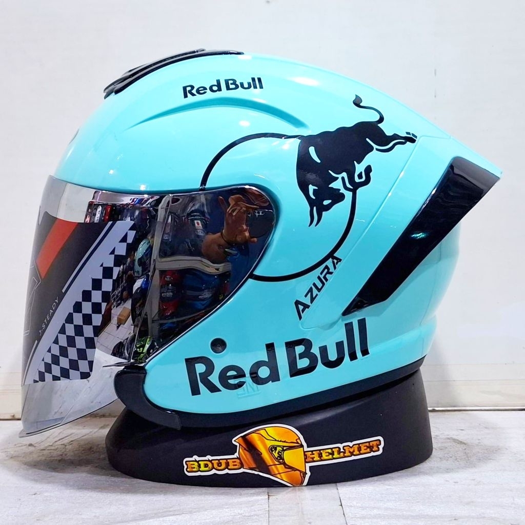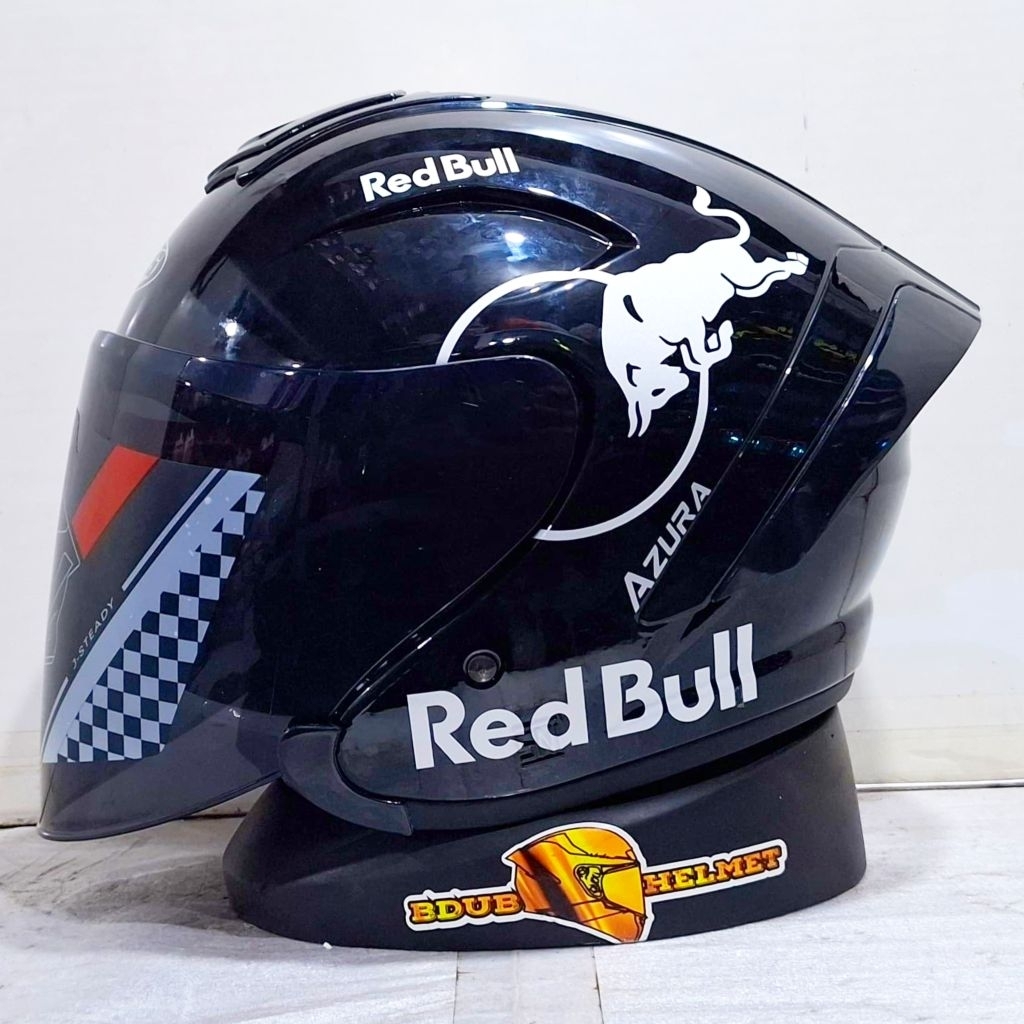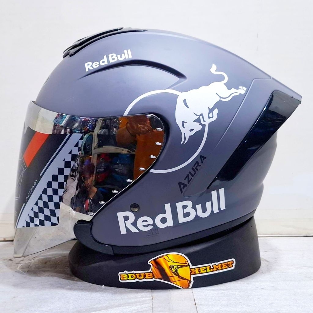 Helm NIELS azura White Redbull paket ganteng spoiler 3D