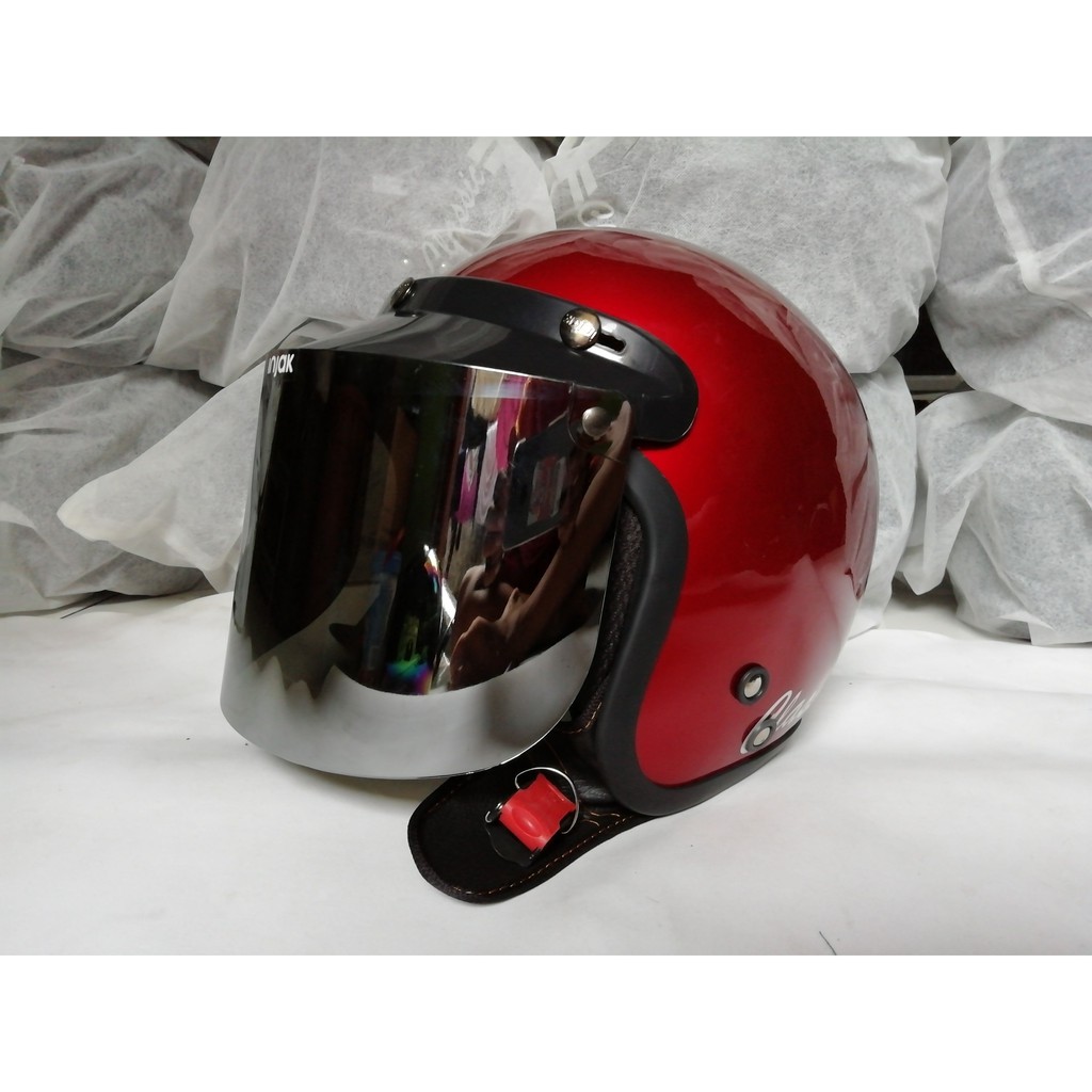 HELM BOGO CLASSIC DEWASA WARNA MERAH DATAR SILVER