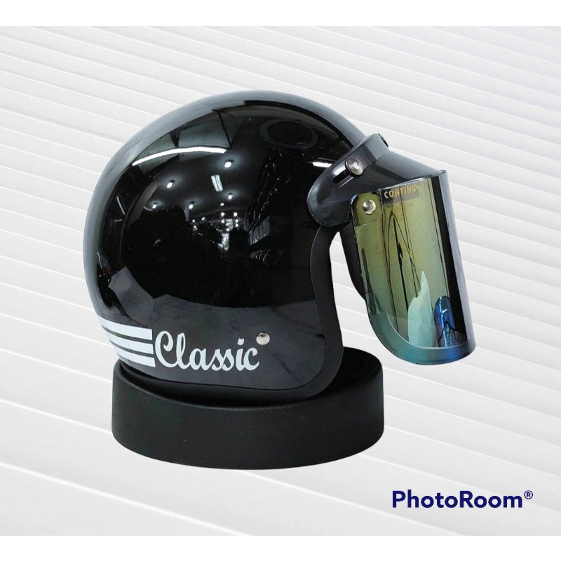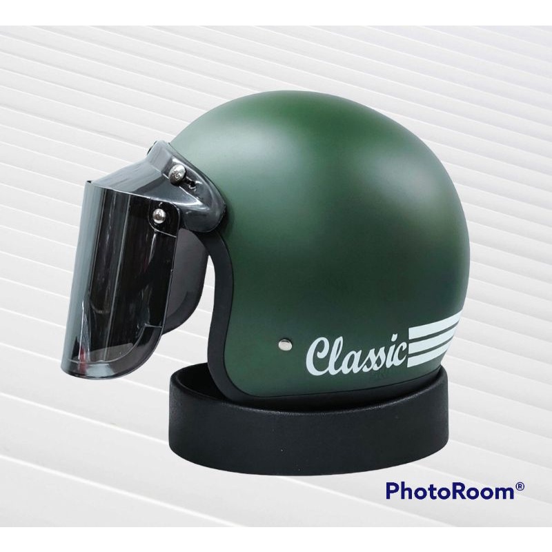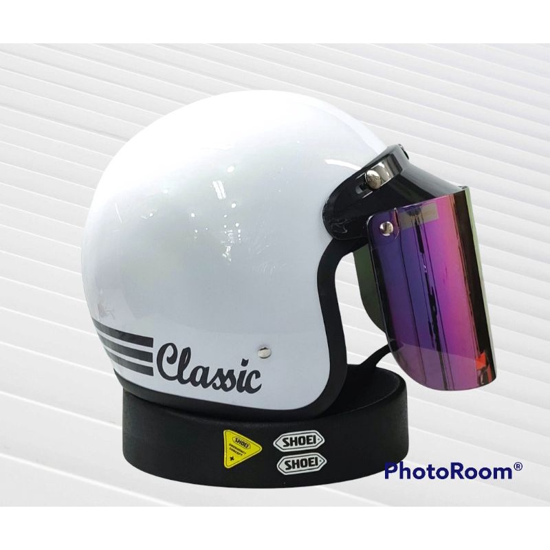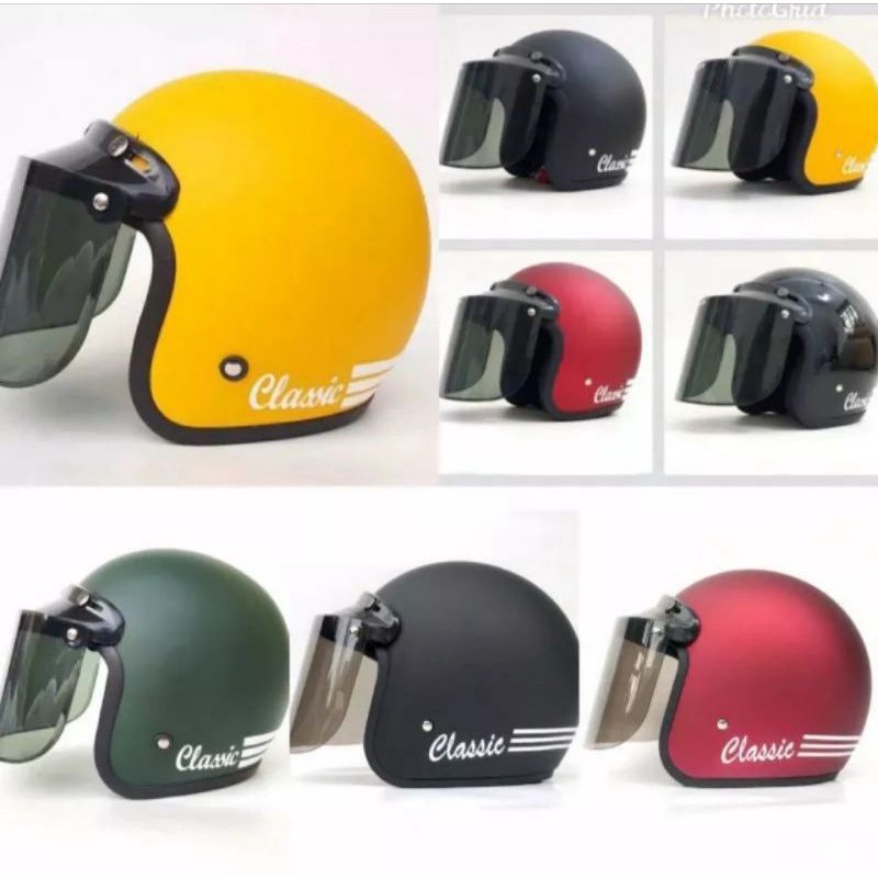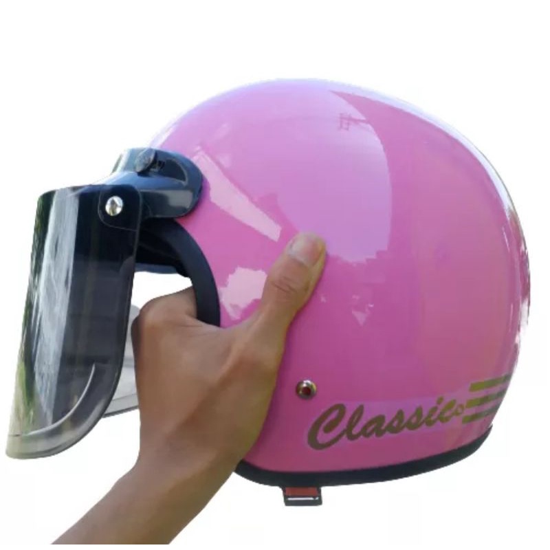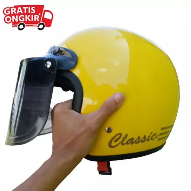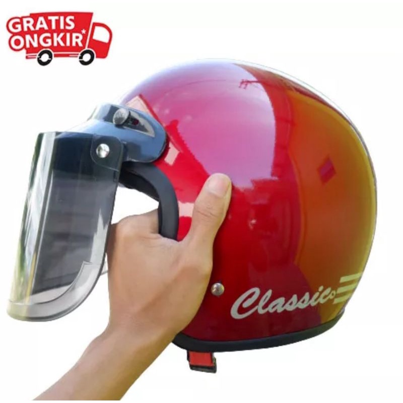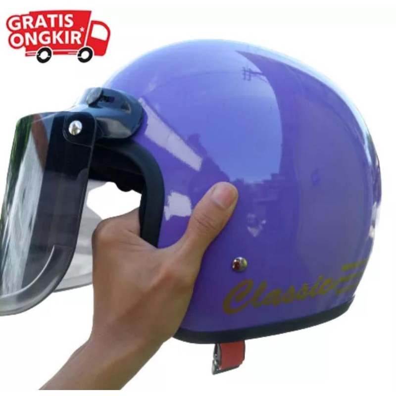 HELM BOGO CLASSIC GARIS TIGA HELM BOGO PRIA WANITA HELM BOGO DEWASA SNI MURAH POLOS KACA DATAR FLAT
