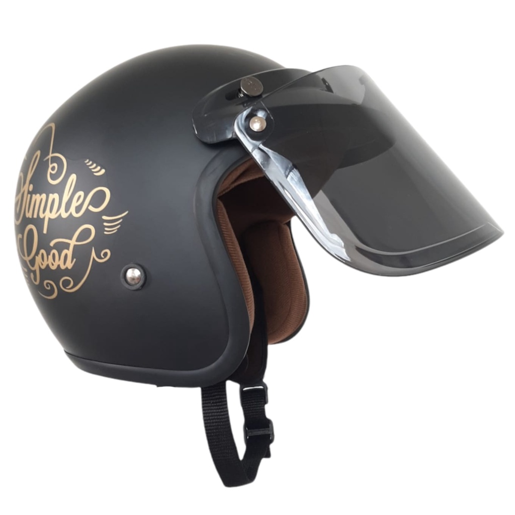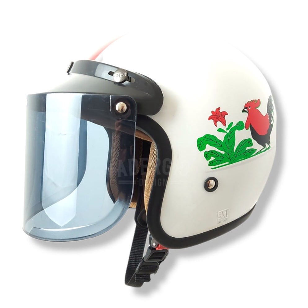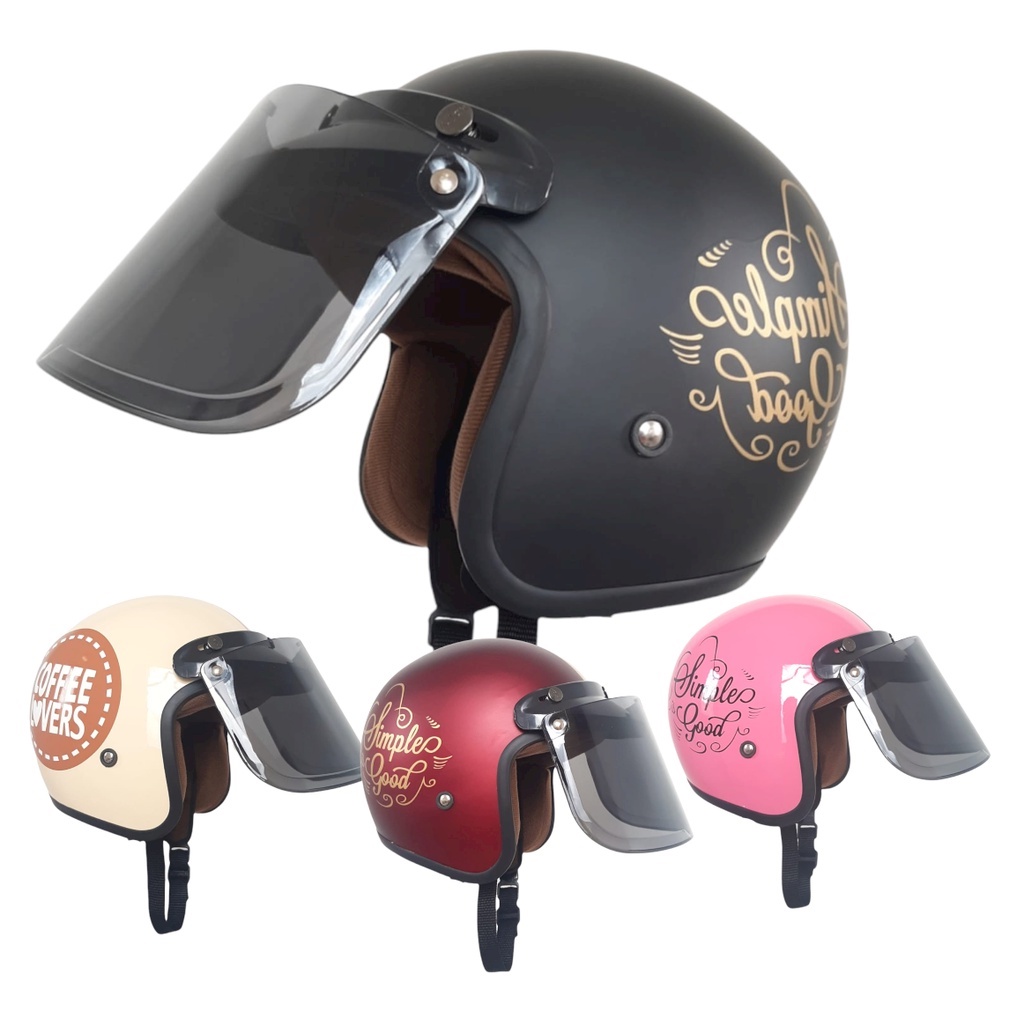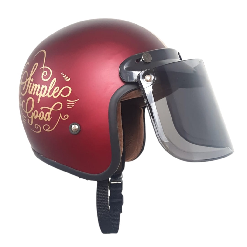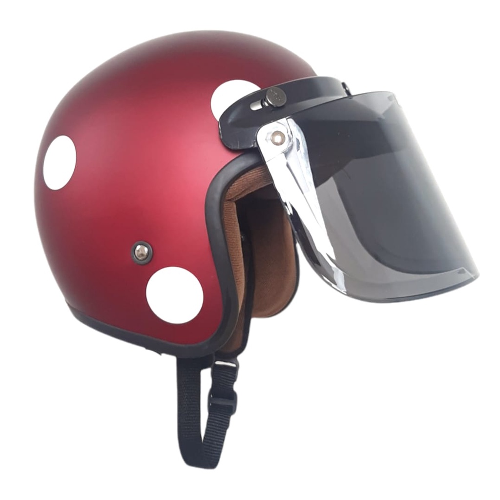 Helm Bogo Dewasa Wanita Kaca Datar Full Leher Retro SNI