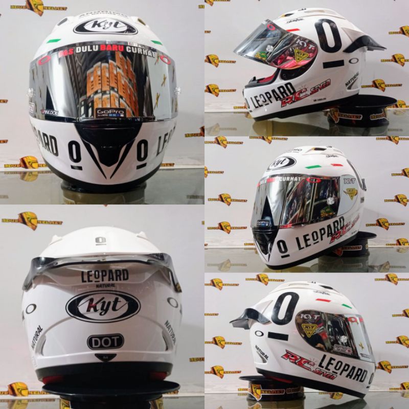 HELM FULL FACE KYT RC7 SOLID WHITE LEOPARD ORIGINAL HELM MODIP(PAKET GANTENG)