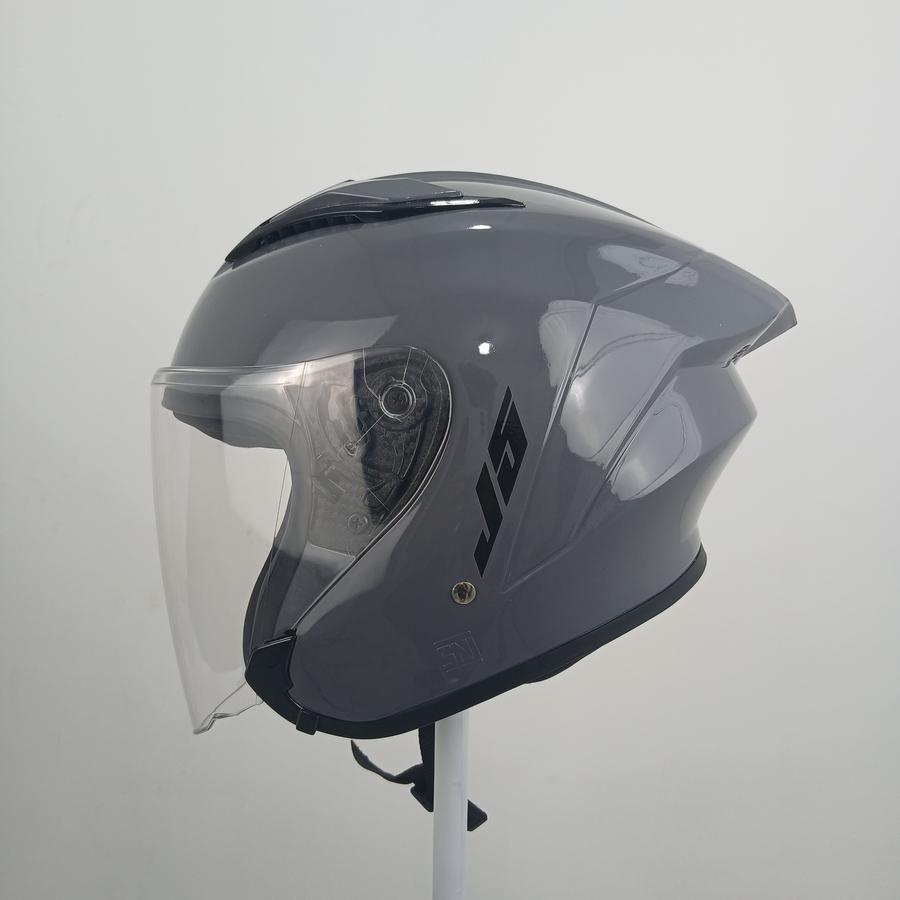 MLA J5 Helm Half Face SNI Single Visor Kaca Bening - Stone Grey Glossy