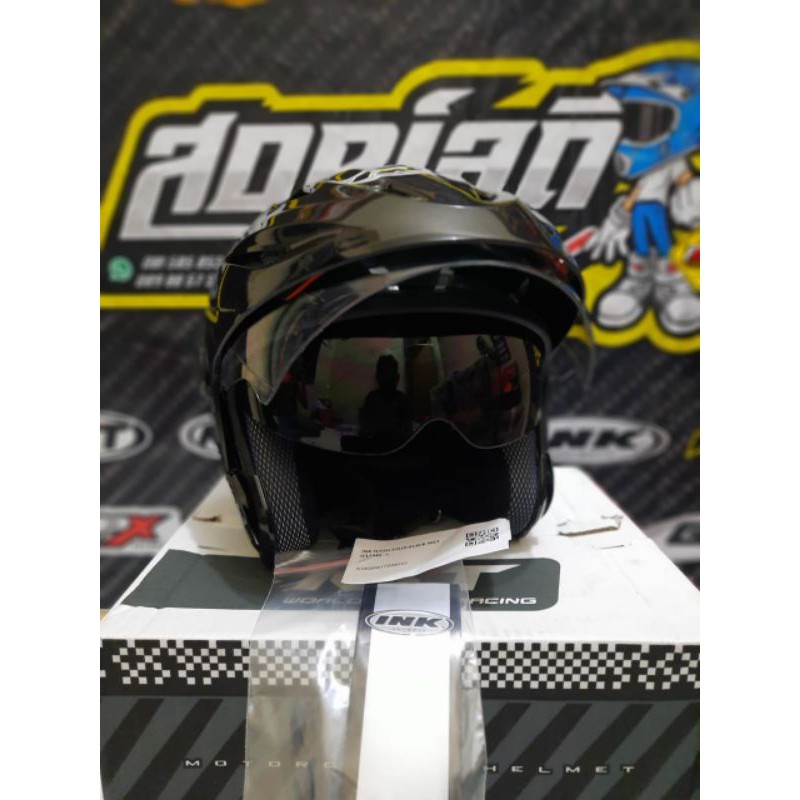 HELM INK FLASH ORI BLACK METALIK DOUBLE VISOR HELM TOURING DOBEL VISOR INK FLASH HITAM HELM INK TOPI