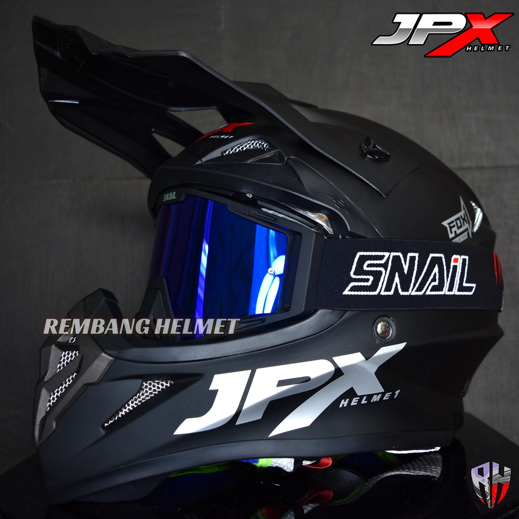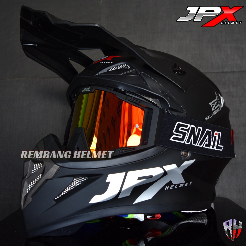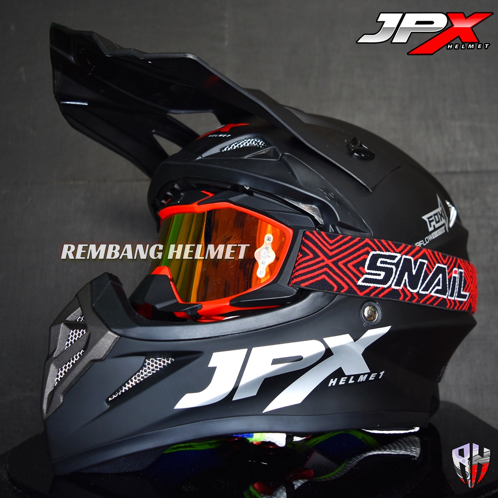 HELM JPX CROSS FOX1 SOLID BLACK DOFF PAKET GANTENG GOOGLE SNAIL, HELM TRABAS, HELM JPX OFFICIAL SHOP