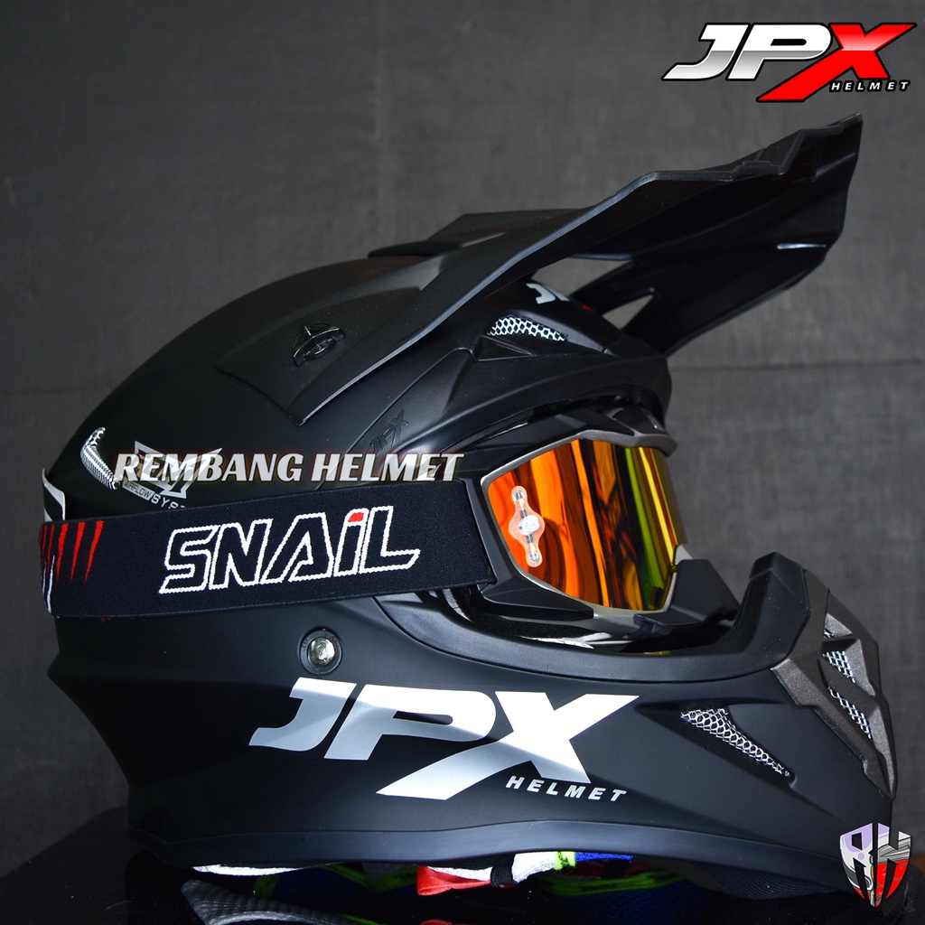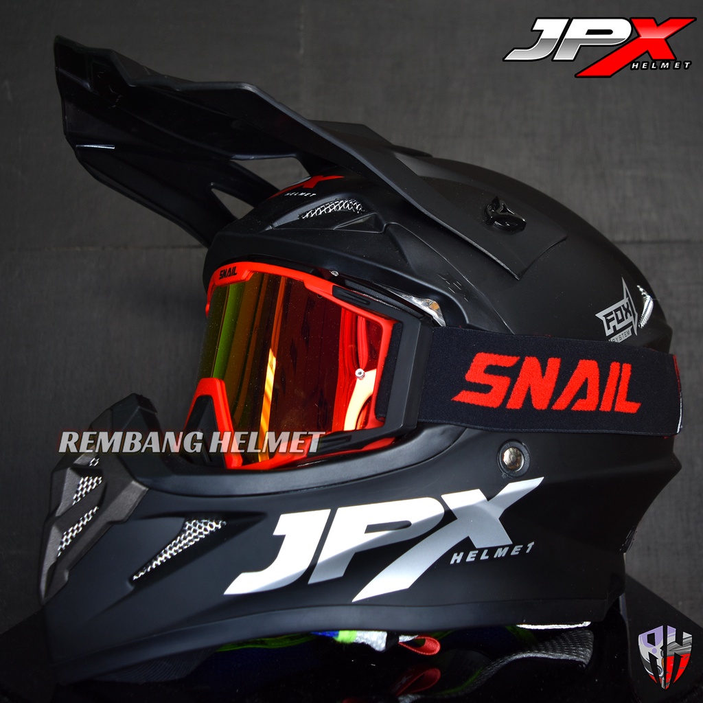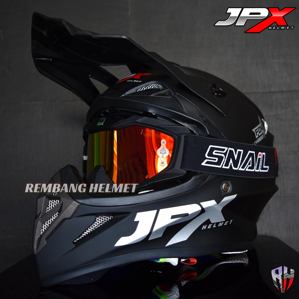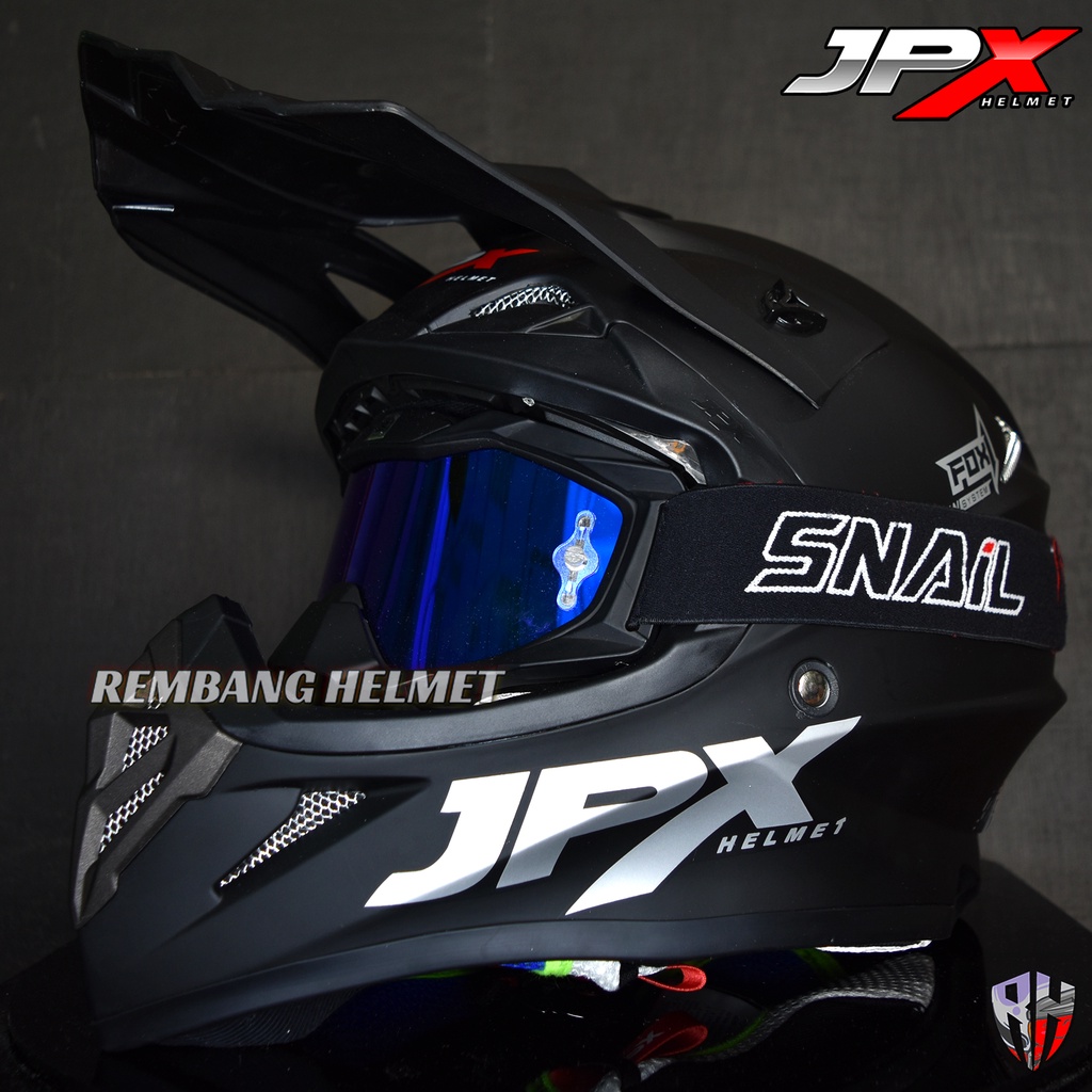 HELM JPX CROSS FOX1 SOLID BLACK DOFF PAKET GANTENG GOOGLE SNAIL, HELM TRABAS, HELM JPX OFFICIAL SHOP