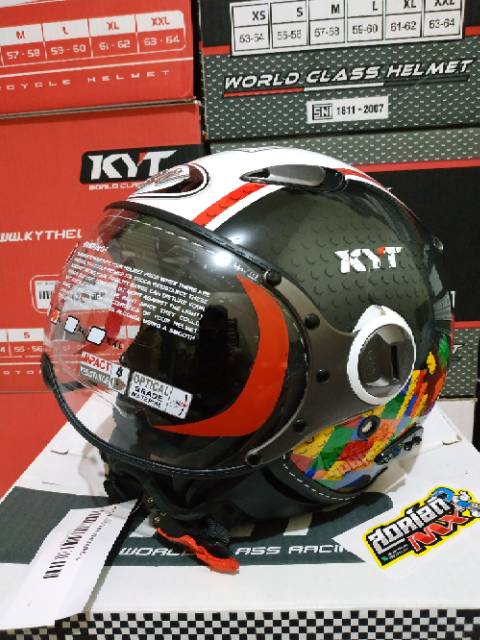 HELM KYT ELSICO MOTIF 5 WHITE BLACK RED HELM RETRO KYT HELM BOGO HELM KLASIK HELM JADUL HELM VESPA