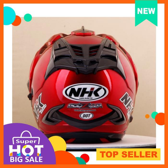 HELM NHK GODZILLA HALF FACE GODZILA DOUBLE VISOR RED MERAH