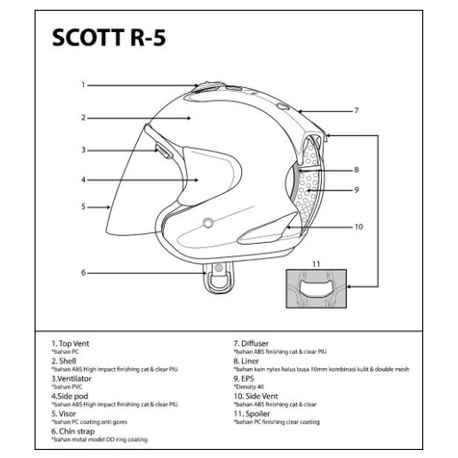 HELM SCOTT R5 / VZRAM / HELM HALF FACE + FREE STIKER