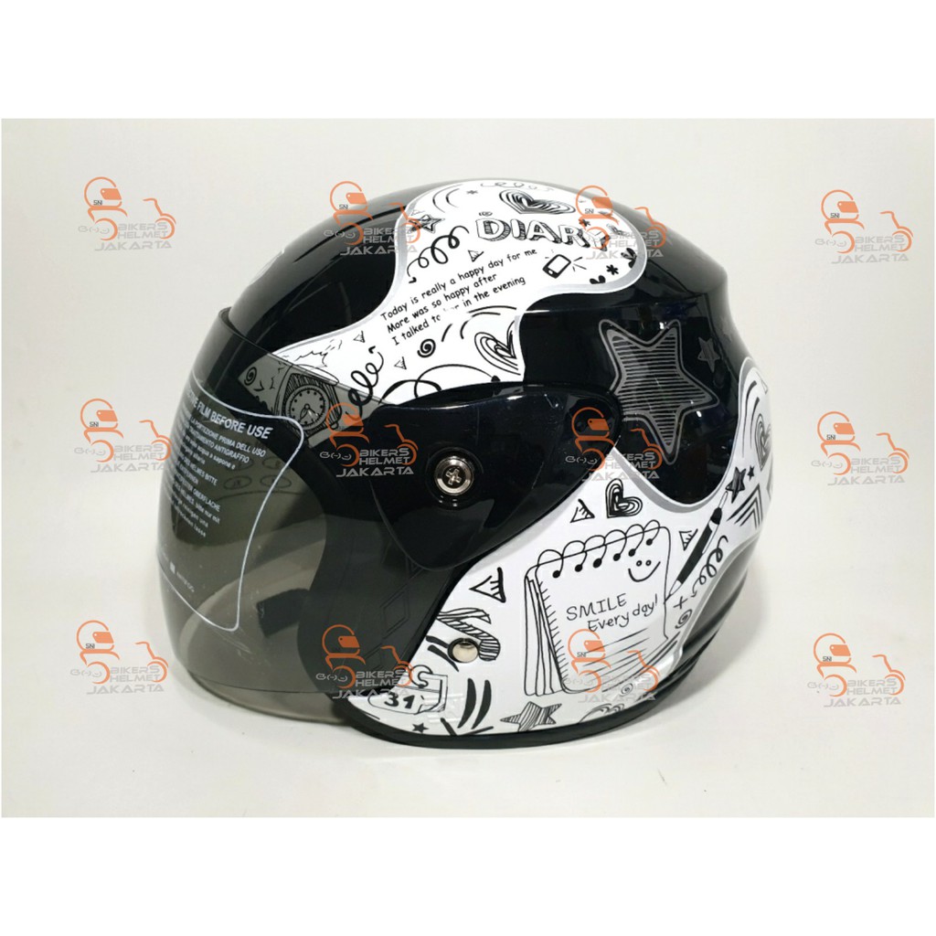 HELM Sepeda Motor SNI DIARY BTS BLACK WHITE GLOSS MODEL GM EVO HALF FACE SNI RESMI LOGO SNI TIMBUL