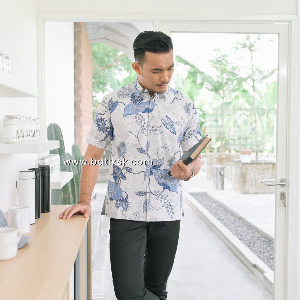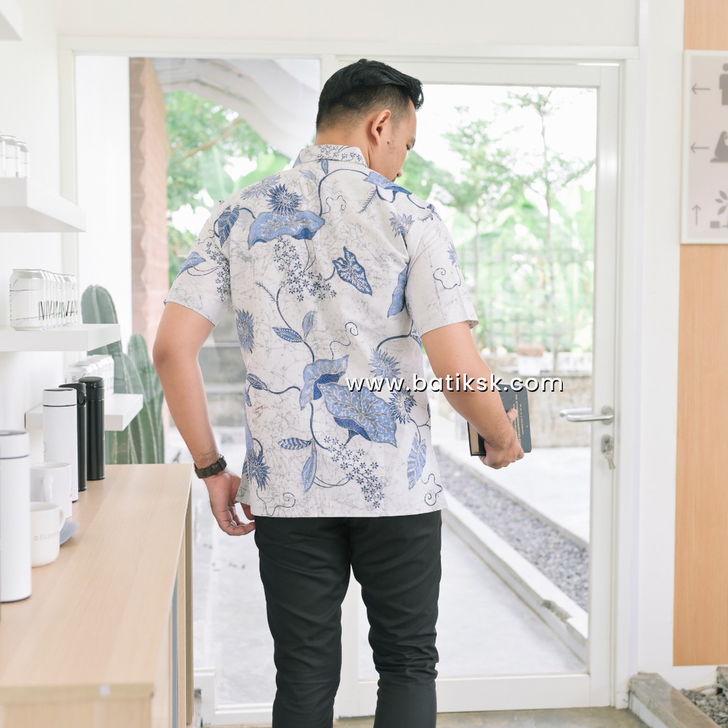 HEM BATIK PUTIHAN TERATAI BIRU