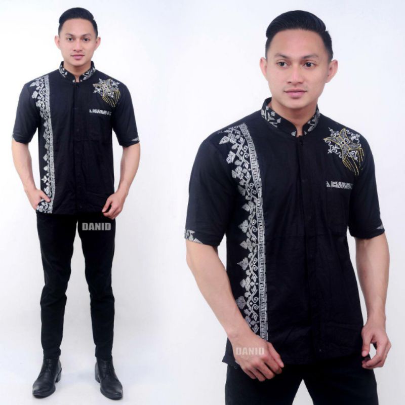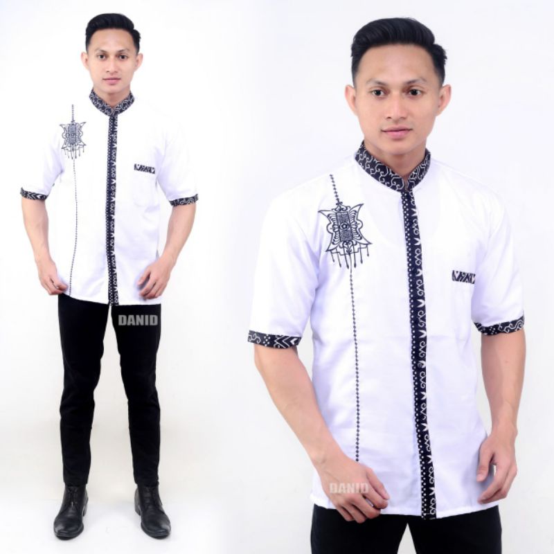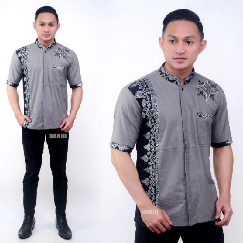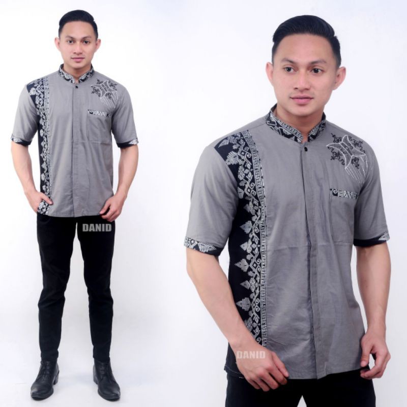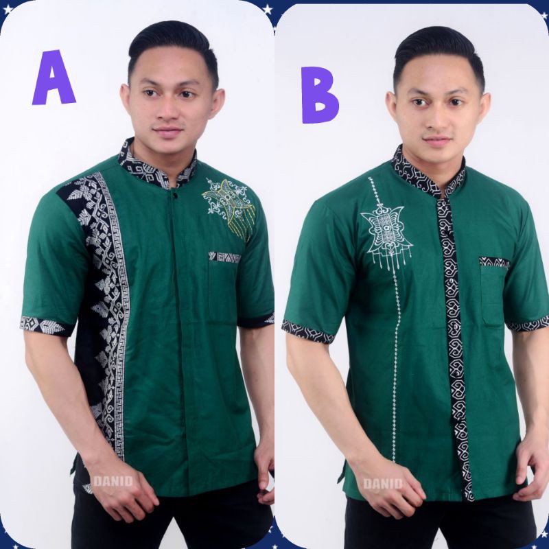 HEM BATIK koko batik kombinasi/ HEM KOKO BORDIR PINTU ACEH/koko batik lengan pendek/baju muslim/