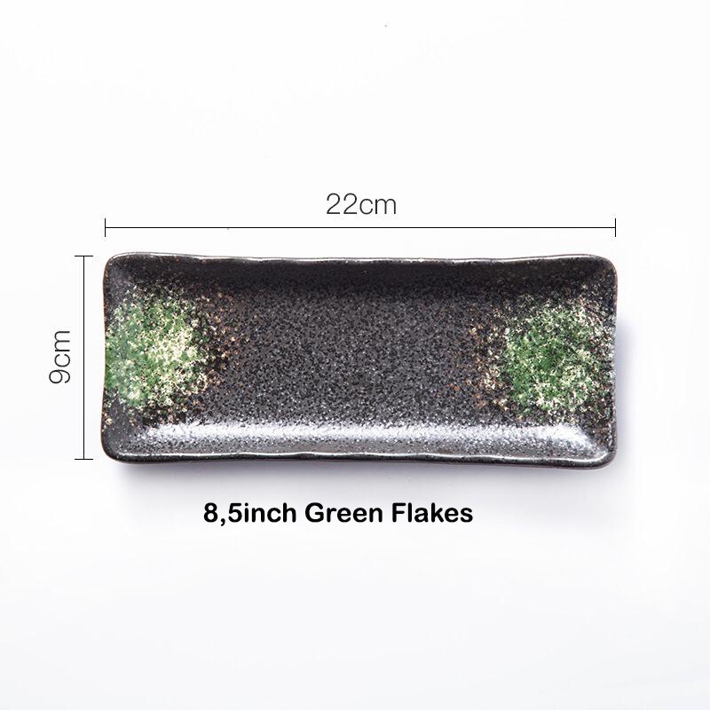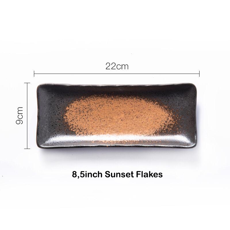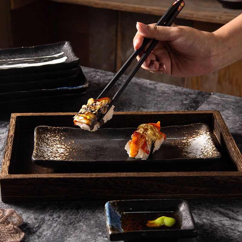 HHS Piring Keramik Sushi Plate Persegi Panjang Japanese Ceramic Long Plate Black Series