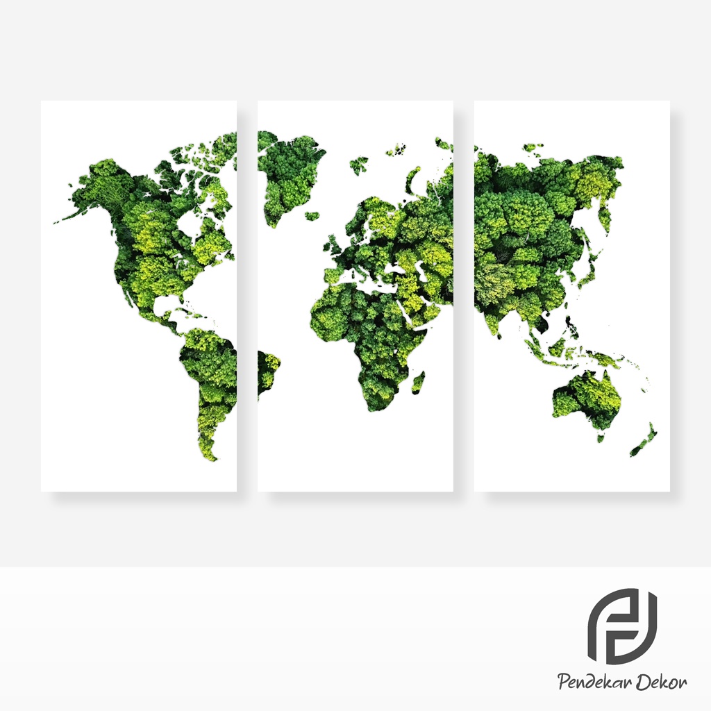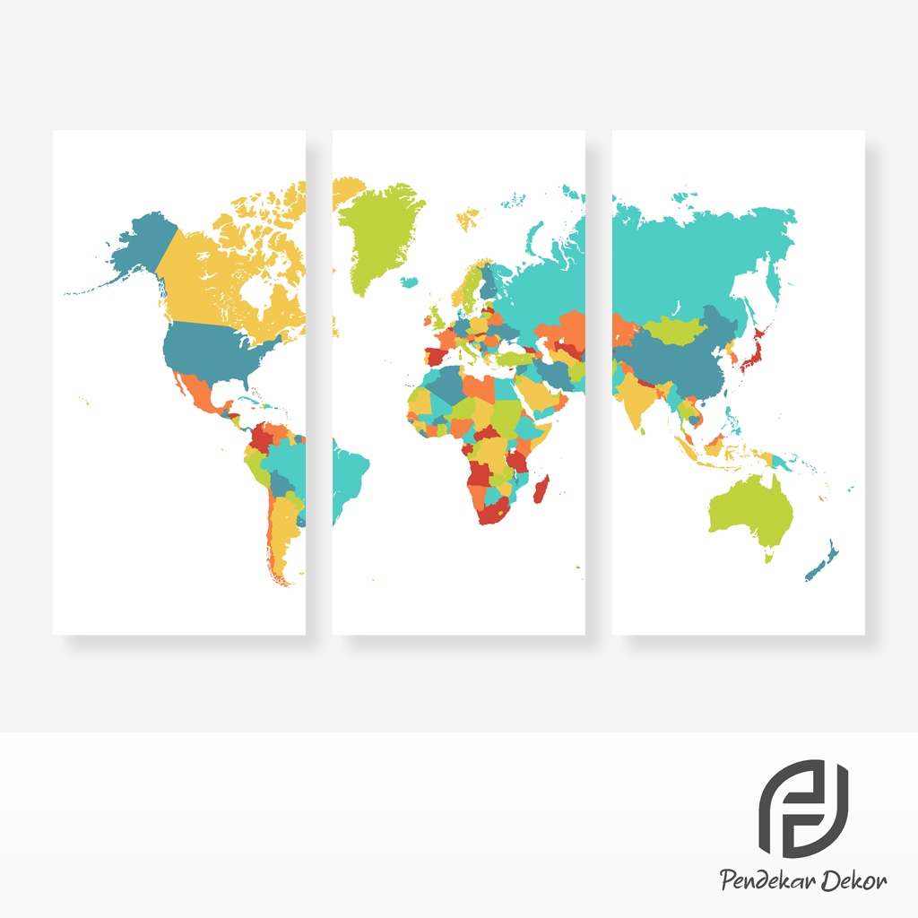HIASAN DINDING 1 SET - PAJANGAN PETA DUNIA - HIASAN WORLD MAP - PAJANGAN CANTIK - PENDEKAR DEKOR