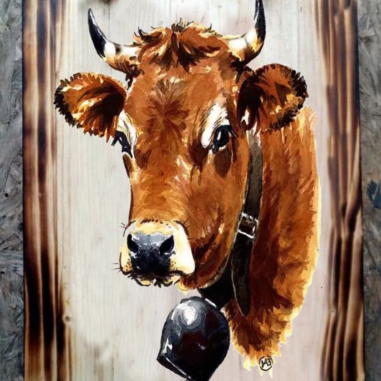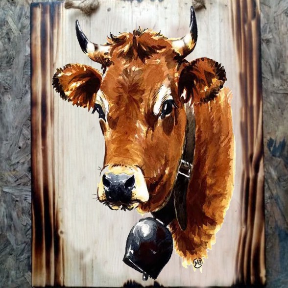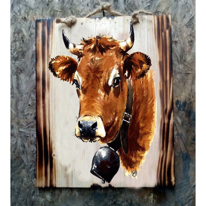 HIASAN DINDING LUKISAN KAYU BINATANG SAPI ABSTRAK JATIBELANDA BAKAR