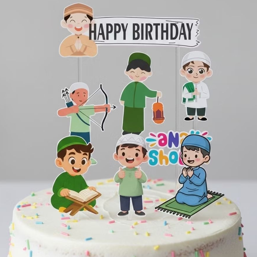 HIASAN KUE CUSTOM TOPPER ULTAH ANAK SHOLEH SANTRI TOPPER CAKE ULANG TAHUN