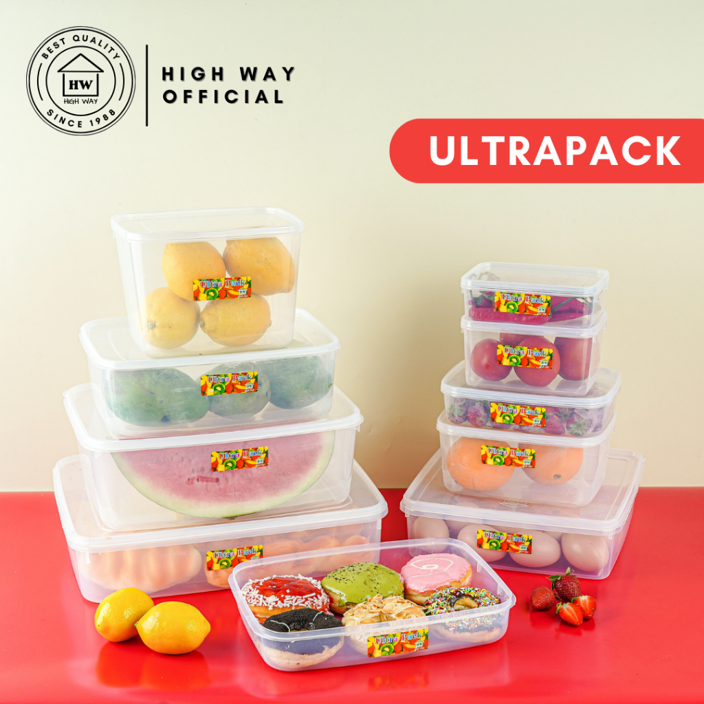 HIGH WAY - Ultrapack 7000ml Sealware Plastik Besar Set Tanpa Sekat Wadah Tempat Donat Kotak Penyimpanan Makanan Serbaguna Toples Permen Baju dengan Tutup Bening Transparan Aesthetic Food Container BPA FREE Food Grade