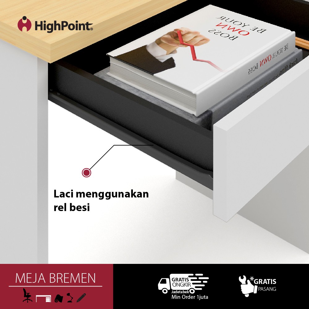 HighPoint Meja Kerja Minimalis / Meja Belajar / Meja Kantor Laci Berkualitas - Bremen