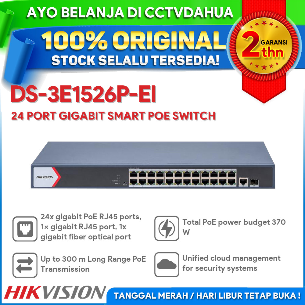HIKVISION DS-3E1526P-EI 24 PORT GIGABIT SMART 370W POE SWITCH RESMI