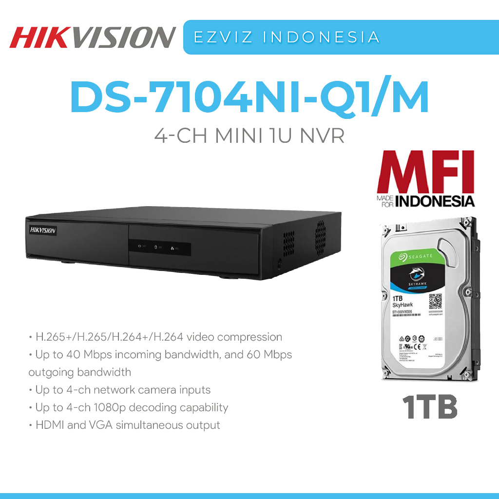 HIKVISION DS-7104NI-Q1/M NVR 4 CHANNEL MINI 1U H.265 BERGARANSI RESMI