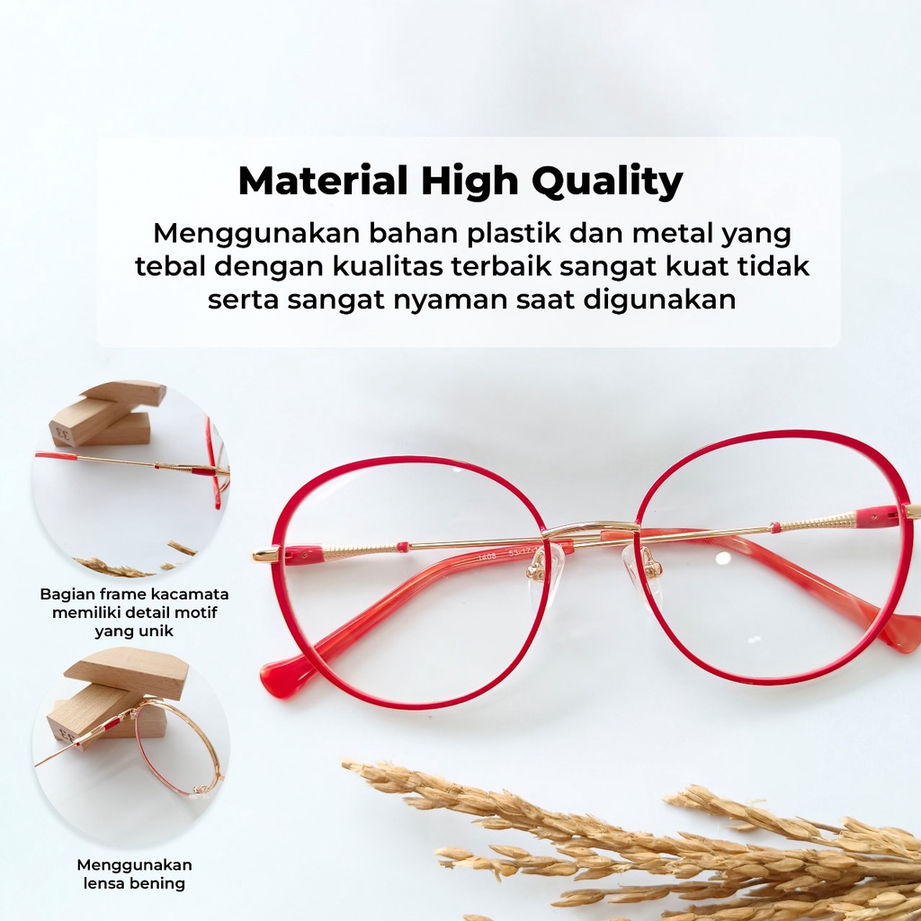 HIOME Kacamata Fashion Unisex 1408 /kacamata Gaya Korean Style / Frame Kacamata Wanita & Pria Trend Import / Frame Kacamata Basic Fashion Untuk Unisex / Frame Kacamata Kekinian / Glasses Frame Import 100%