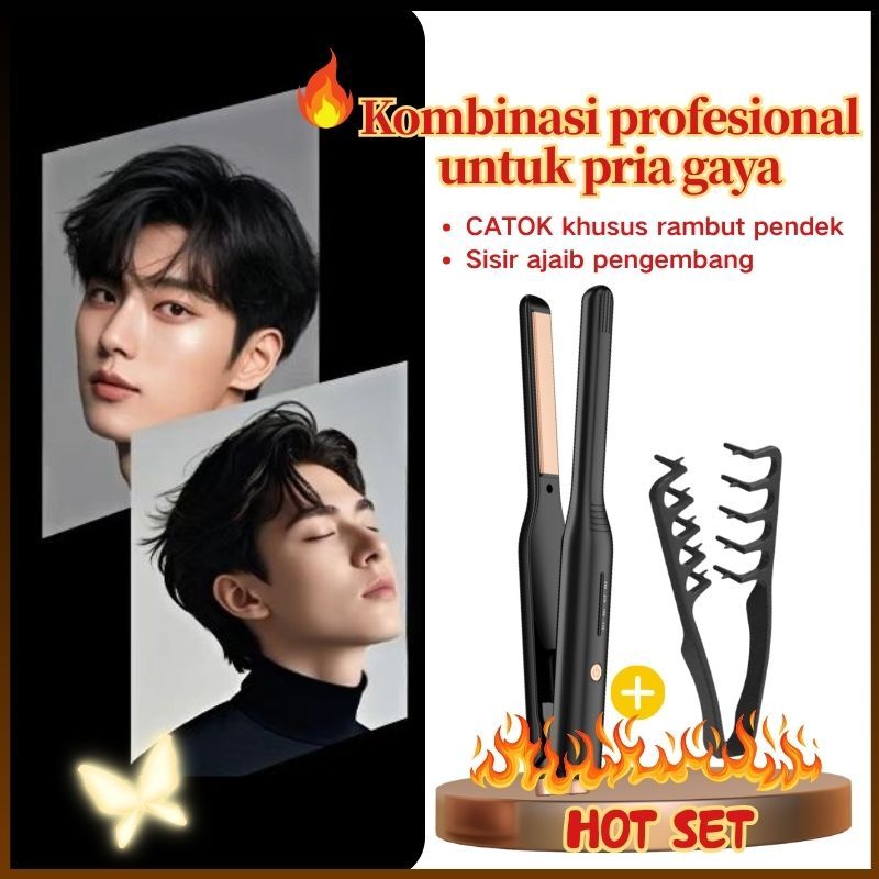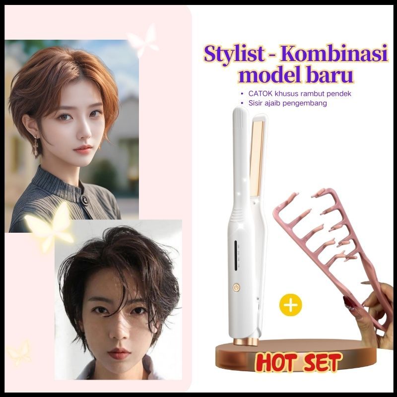 HIR-0176 NEW Korea Hadiah untuk pria Catokan rambut lurus dan keriting catokan ion Catokan Rambut 2in1 Catok Keriting Lurus catokan pelurus rambut crescent volumizer catokan mini portable Catokan Poni