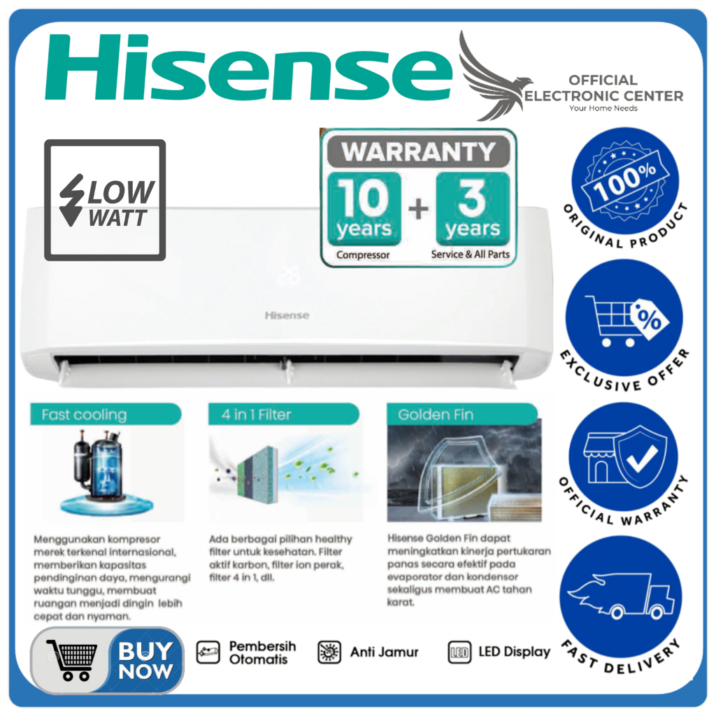HISENSE AC 1 PK AN09CEG AN-09CDG AN09 SUPER LOW WATT STANDARD FAST COOLING R32 AC HISENSE 1PK