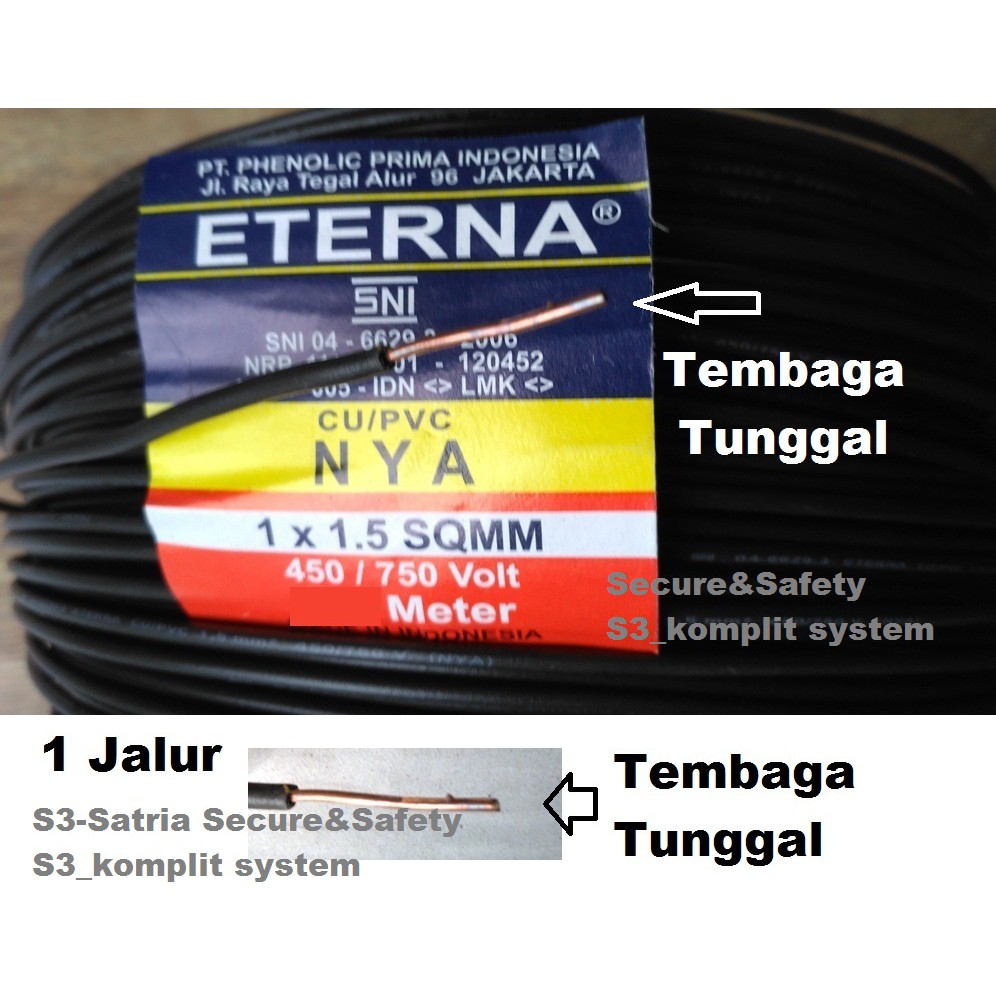 HITAM Kabel Listrik Tunggal 1 jalur Kabel NYA 1,5 mm ( NYA 1x1.5mm )