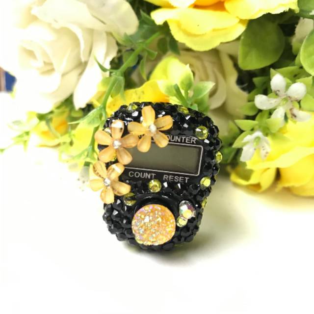 HITAM TOTOL KUNING SAKURA Tasbih digital Swarovski alat hitung dzikir tasbeh Cantik indah bling2