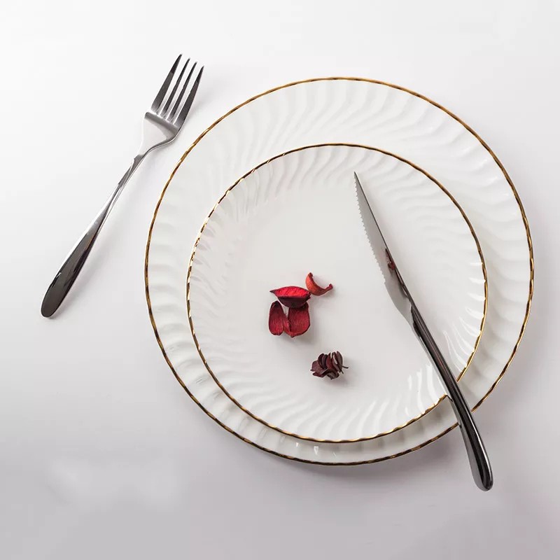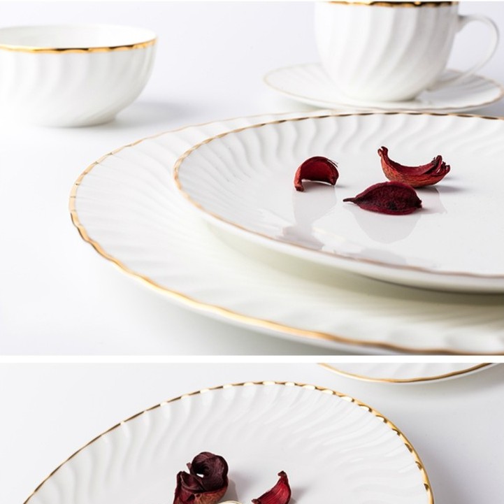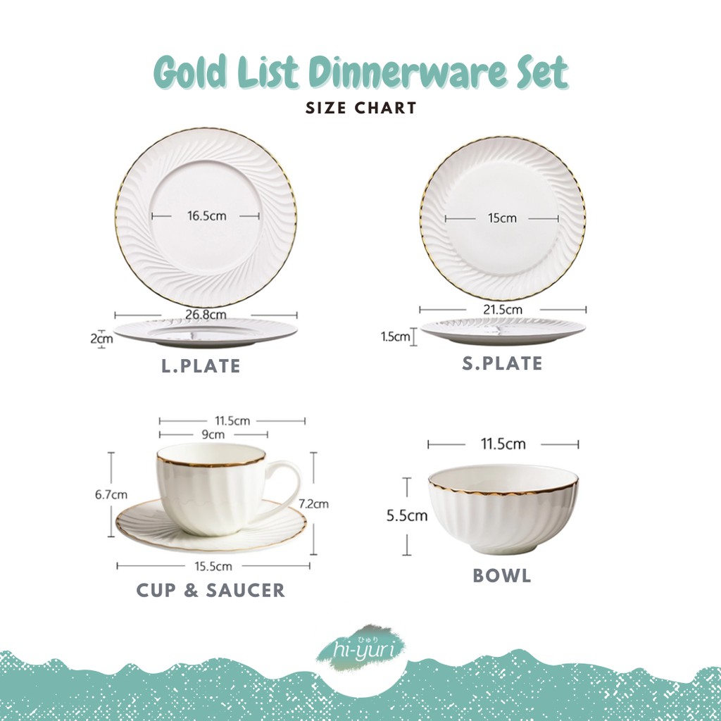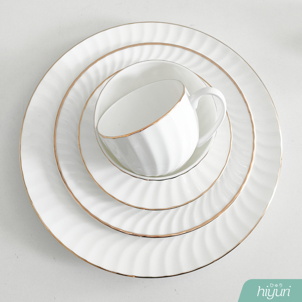 HIYURI Piring Keramik Gold List/mangkok gold list/gelas minum gold list/piring makan gold list/piring makan mewah