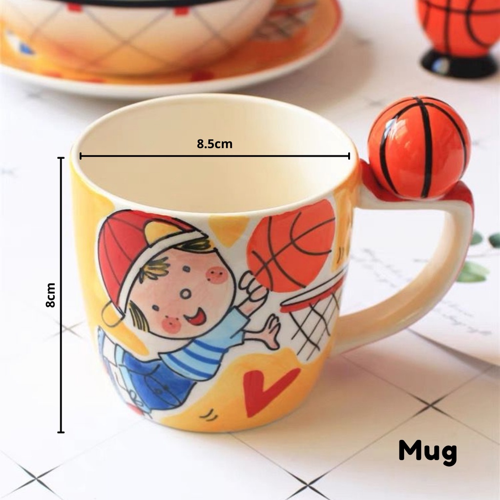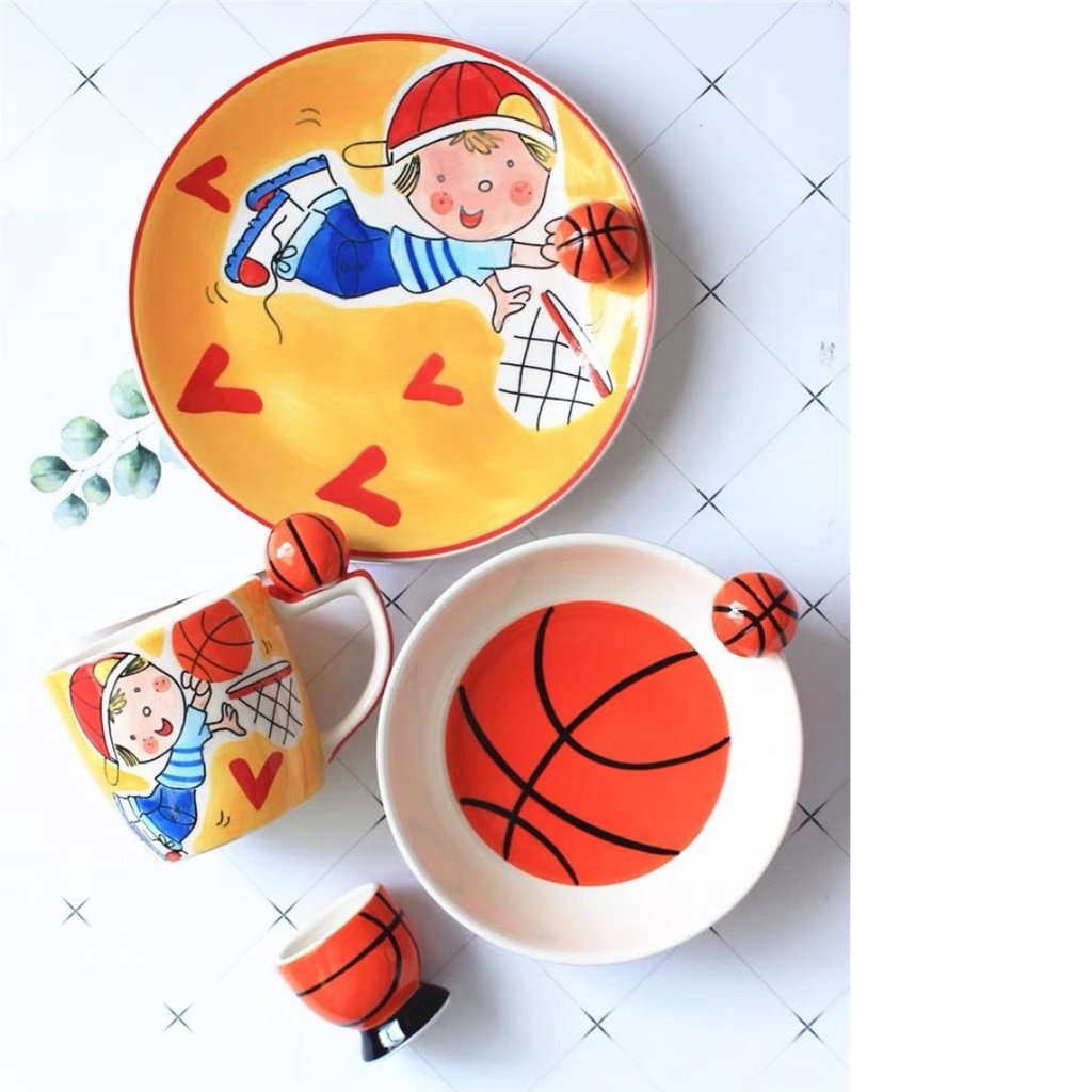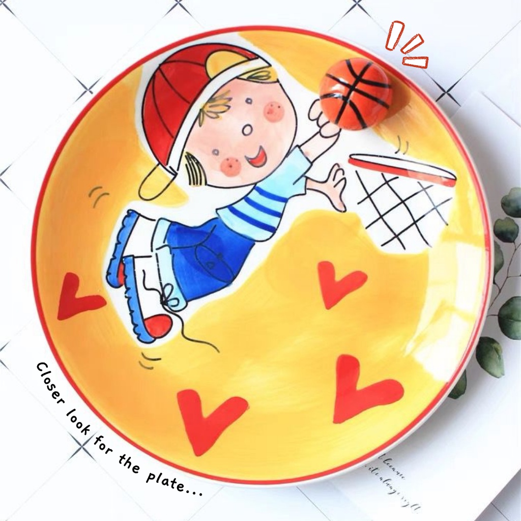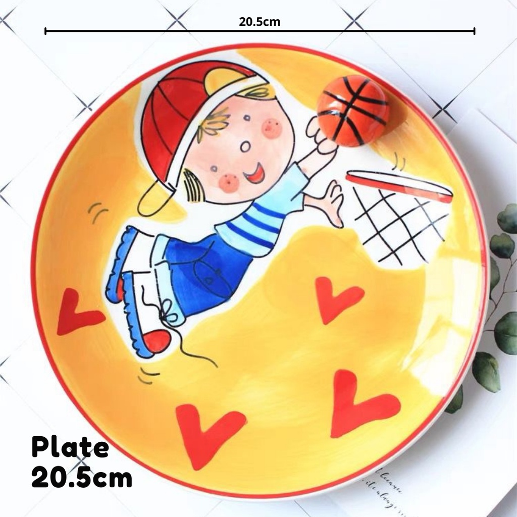 HIYURI Piring Makan Anak Basket/Piring makan anak/Piring makan keramik/Piring makan basket/Piring makan anak bola/Piring anak aesthetic