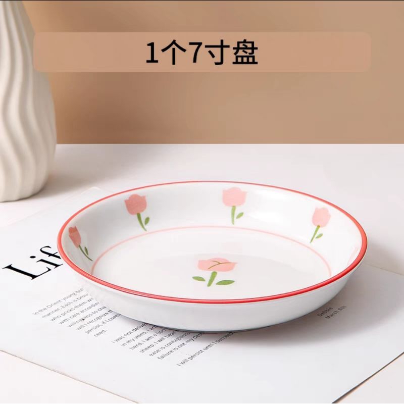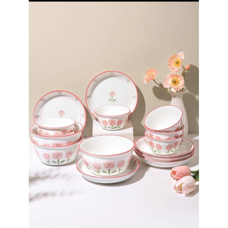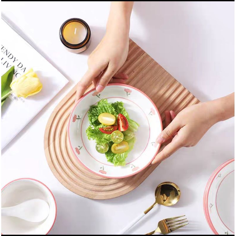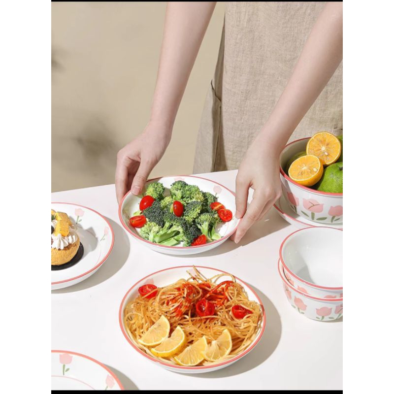HMO - Piring Mangkok Set Bunga Tulip / Piring Bunga Tulip / Mangkok Bunga Tulip
