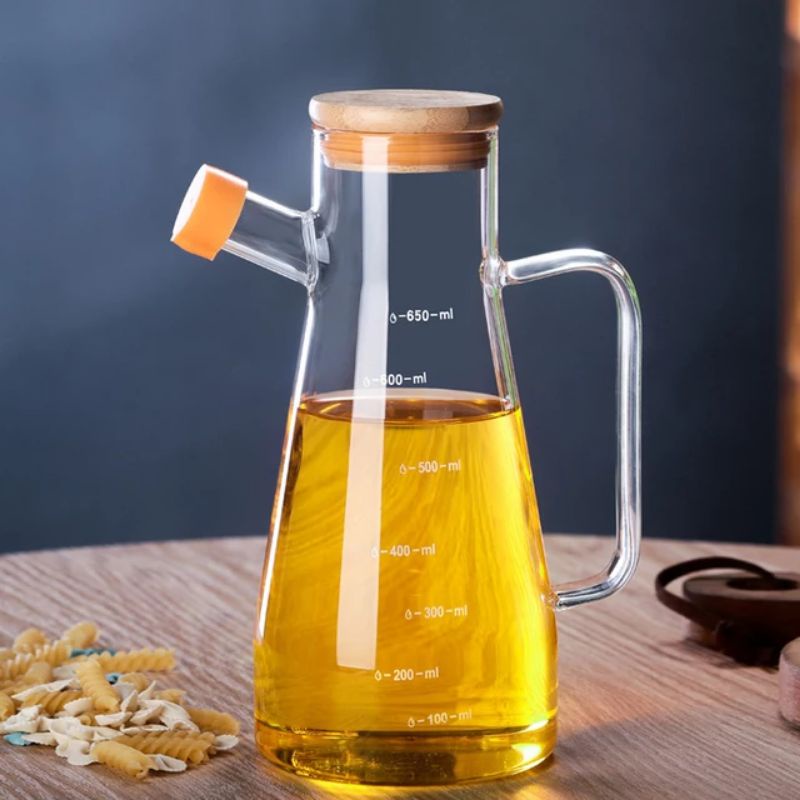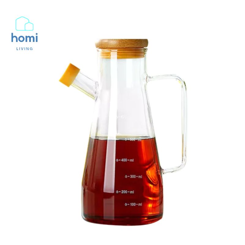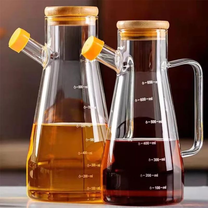 HOMI Botol Tempat Wadah Penyimpanan Teko Air Minyak Goreng Kecap Saos Saus Tiram Mayonais Mayonaise Bumbu Dapur Kaca Borosilicate Glass Oil Pot 700 900 ml 900ml 1 L Liter 1Liter Anti Tumpah Bocor Pecah Tahan Panas Kuat Unik Murah Terbaru - 7RHAOOTP