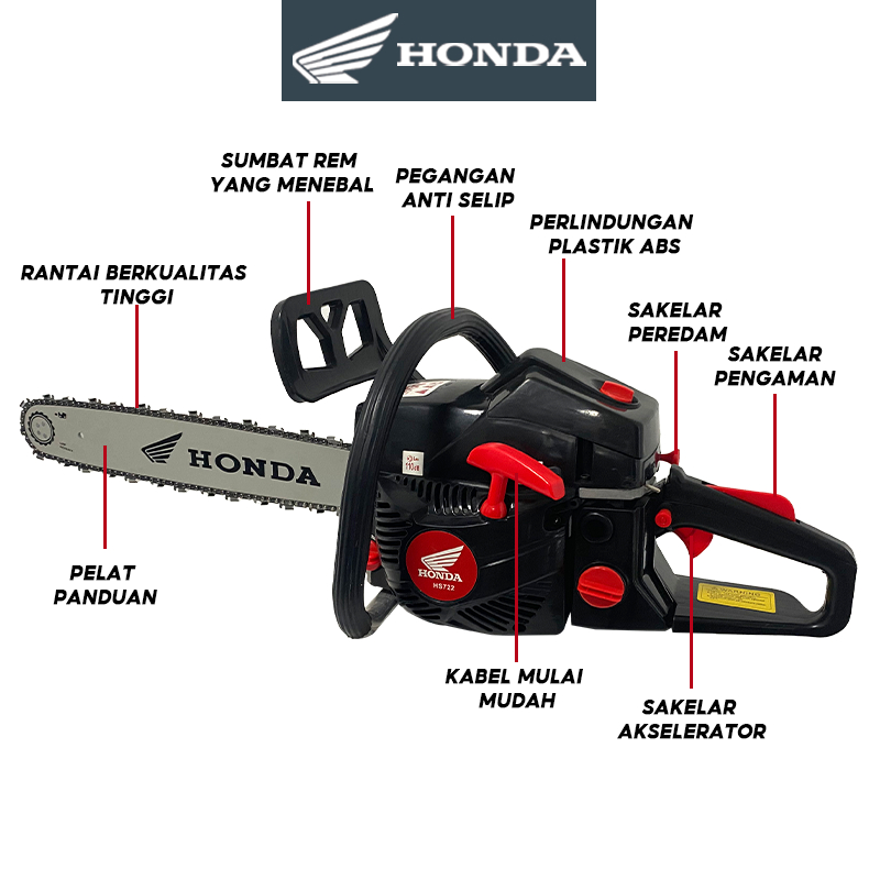 HONDA Mesin Potong Kayu 68CC Mesin Sinso Senso Chainsaw 2Tak 20/22/24inch Gergaji Potong Pohon Kayu Gergaji Mesin Potong Kayu Kualitas Terbaik By Japan Technology