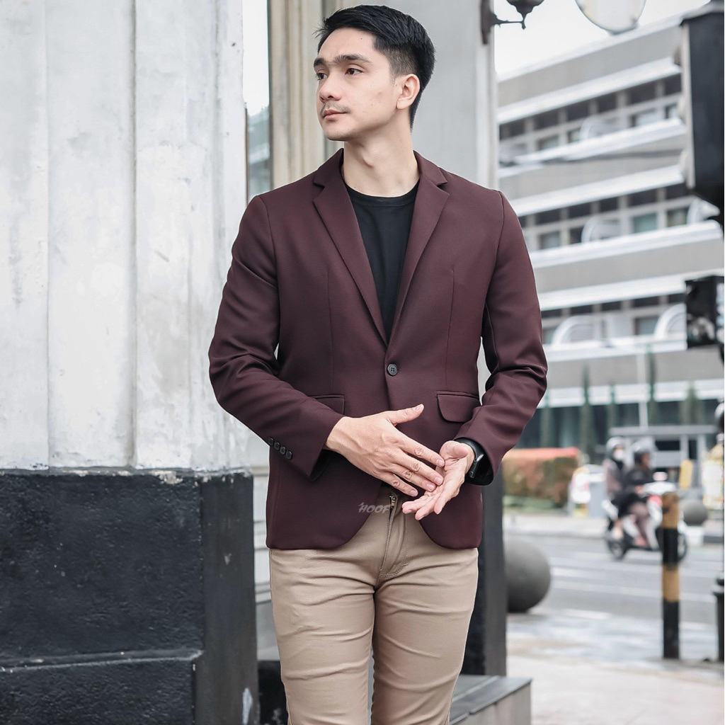 HOOF Blazer Pria Semiwoll - Slimfit, Streach, Furing Tidak Panas
