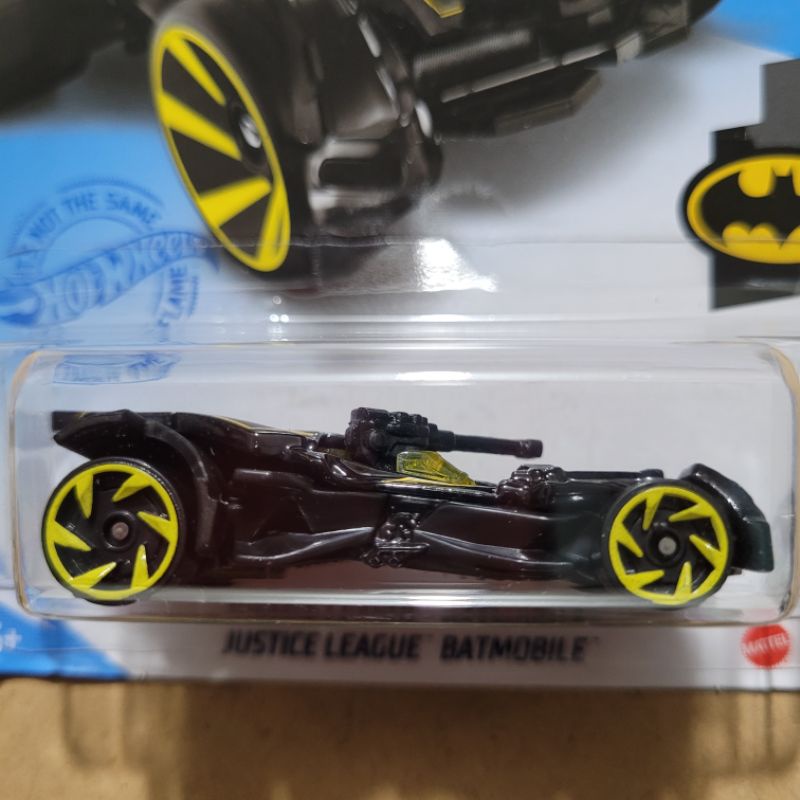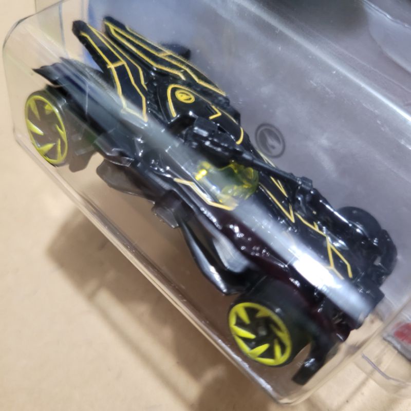 HOT WHEELS [ KEMASAN KERUT/TEKUK ] JUSTICE LEAGUE BATMOBILE / BATMAN [ BLACK YELLOW ] [ TH/TREASURE HUNT ]