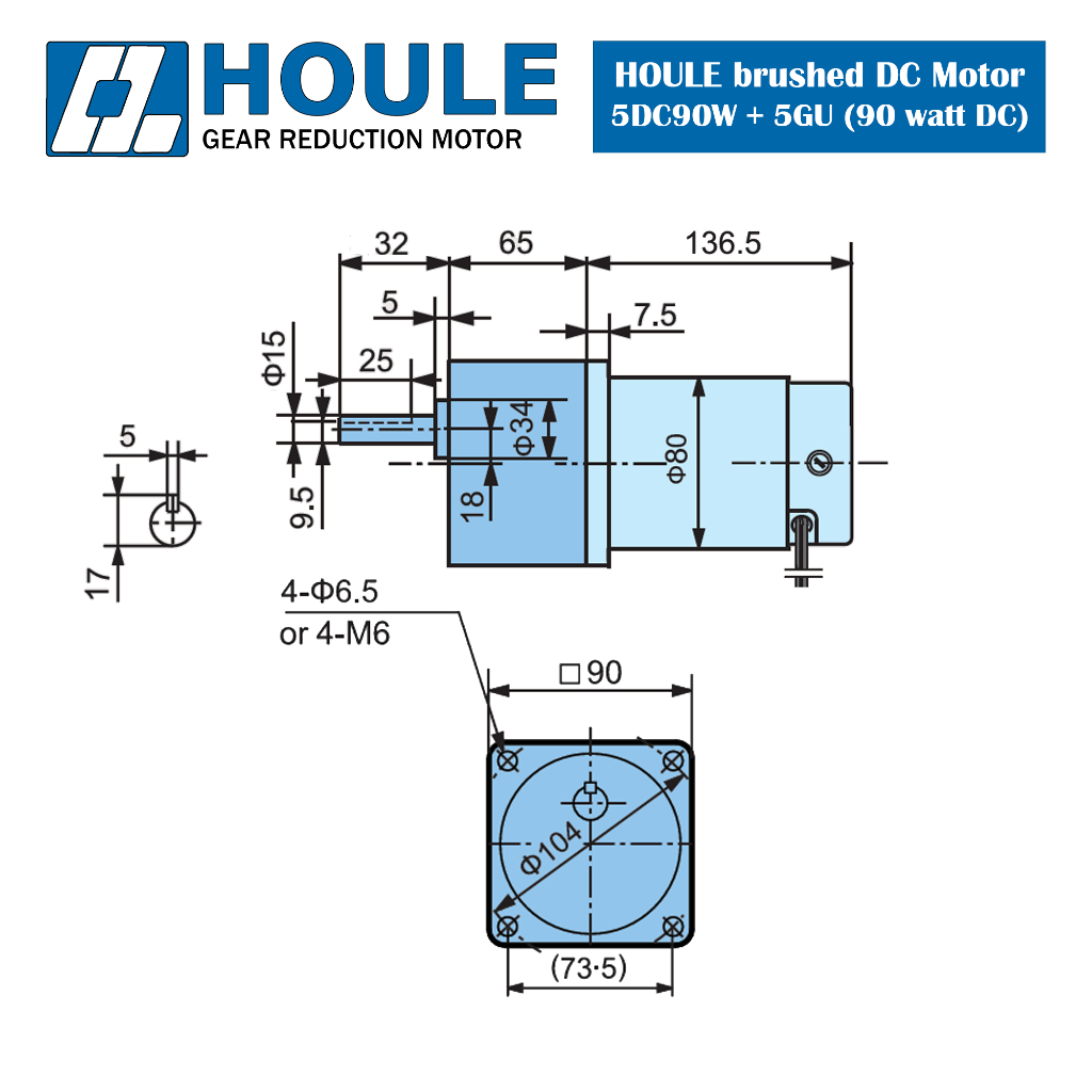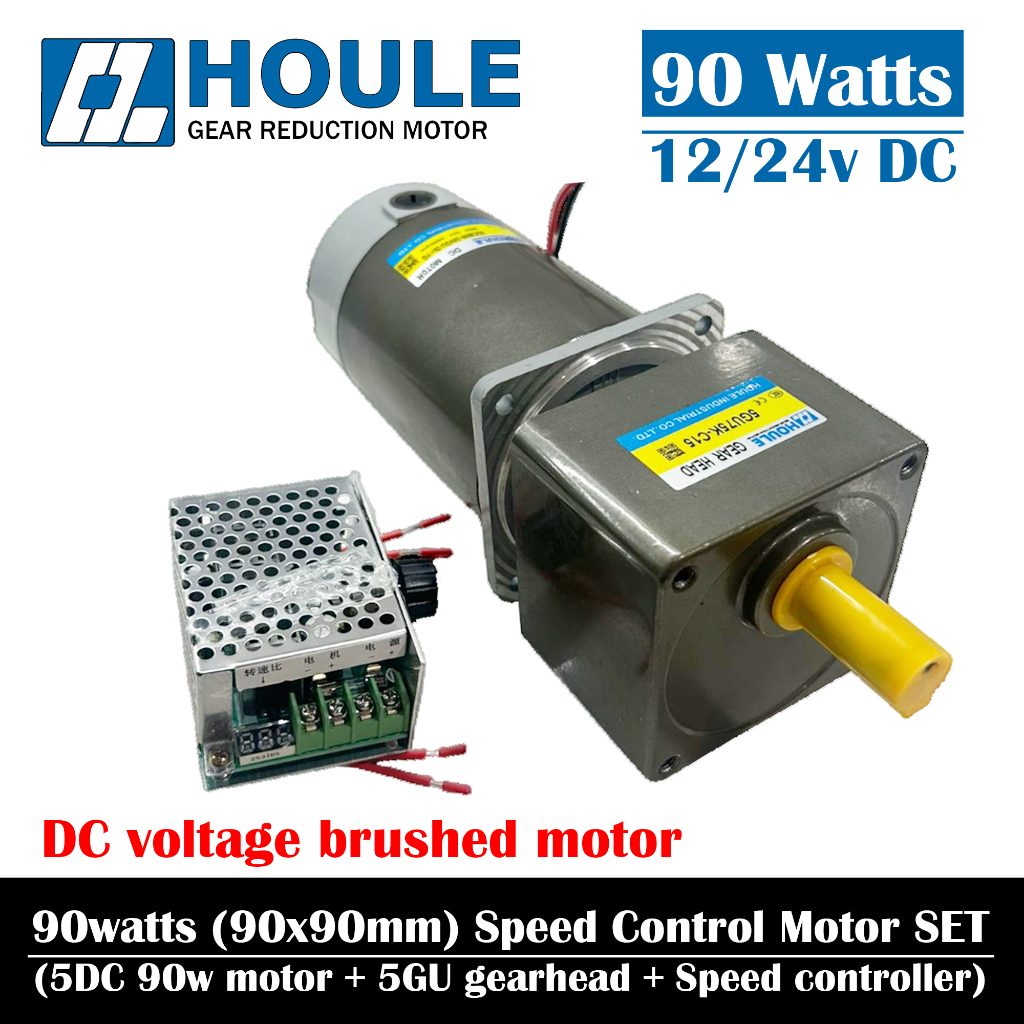 HOULE Motor 90W 12v 24v DC 5DC Variable Speed Control Motor Gearbox Set 90watt Dinamo Induction Gearhead 5GN 5GU Reversible 5DC90W 5DC90R 12VDC 24VDC